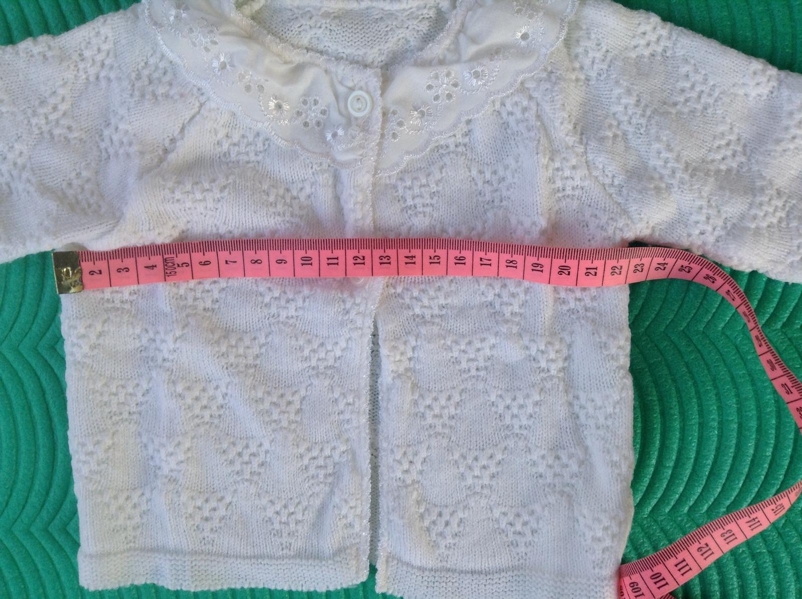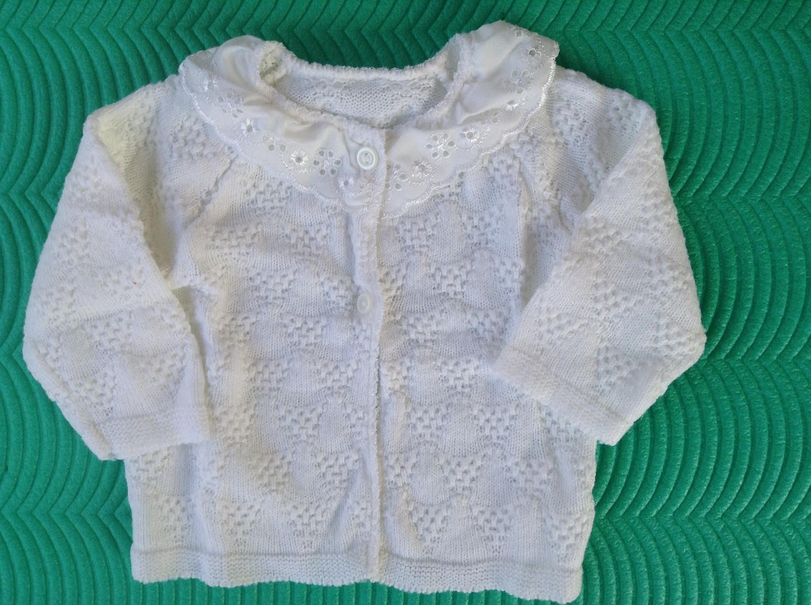 Dierkovaný svetrík v dobrom nosenom stave. Na štítku je veľkosť 0-2 mesiace, my sme ho začali nosiť neskôr, okolo 3 mesiaca.
