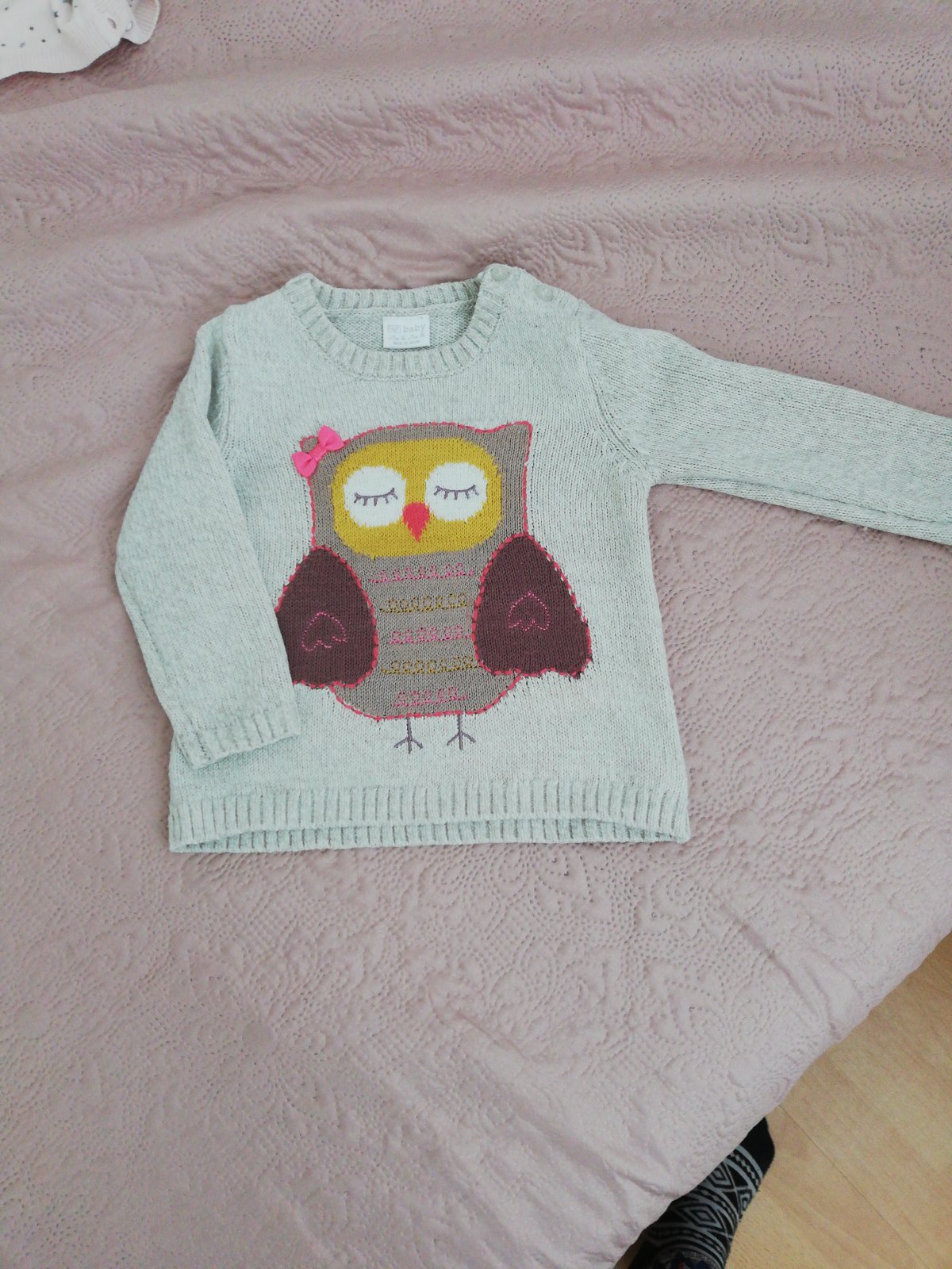 Predám tenký svetrík v nosenom stave bez poškodení, veľkosť uvádzaná 18-24 mesiacov, my sme nosili do troch rokov. Rozmery: celková dĺžka je 34 cm, rukáv od pleca 31 cm, cez prsia 2x 30 cm.Cena 2...