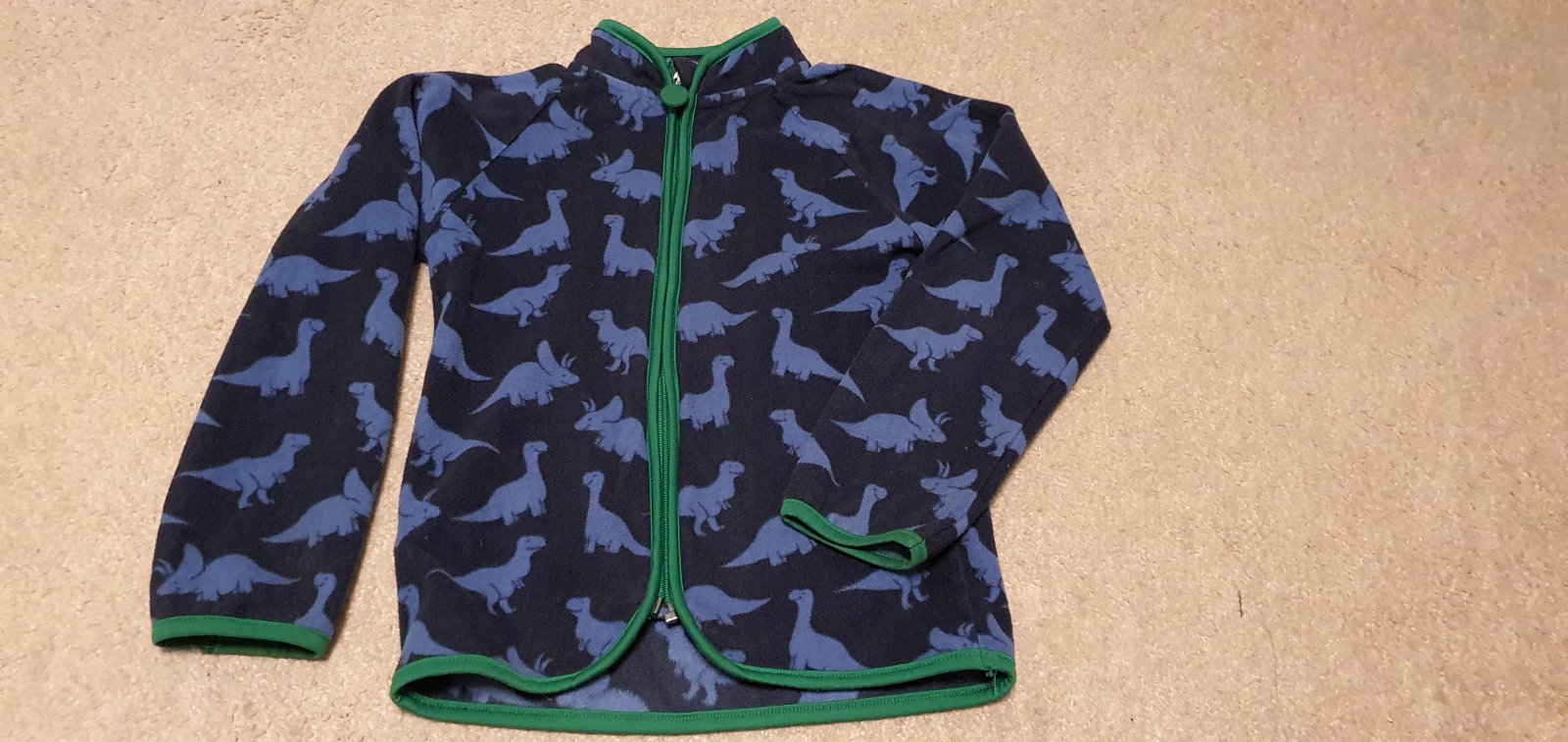 nosena - zachovala mikina. prijemny flis, dinosaury ako oblubena potlac pre deti.