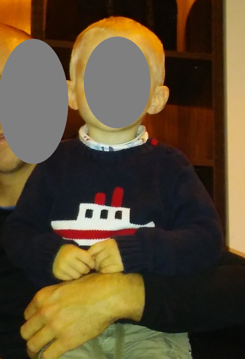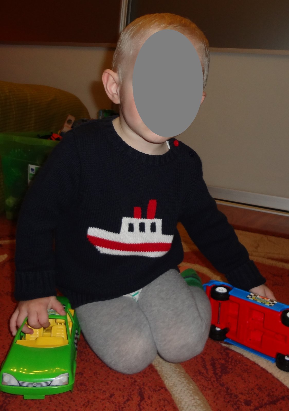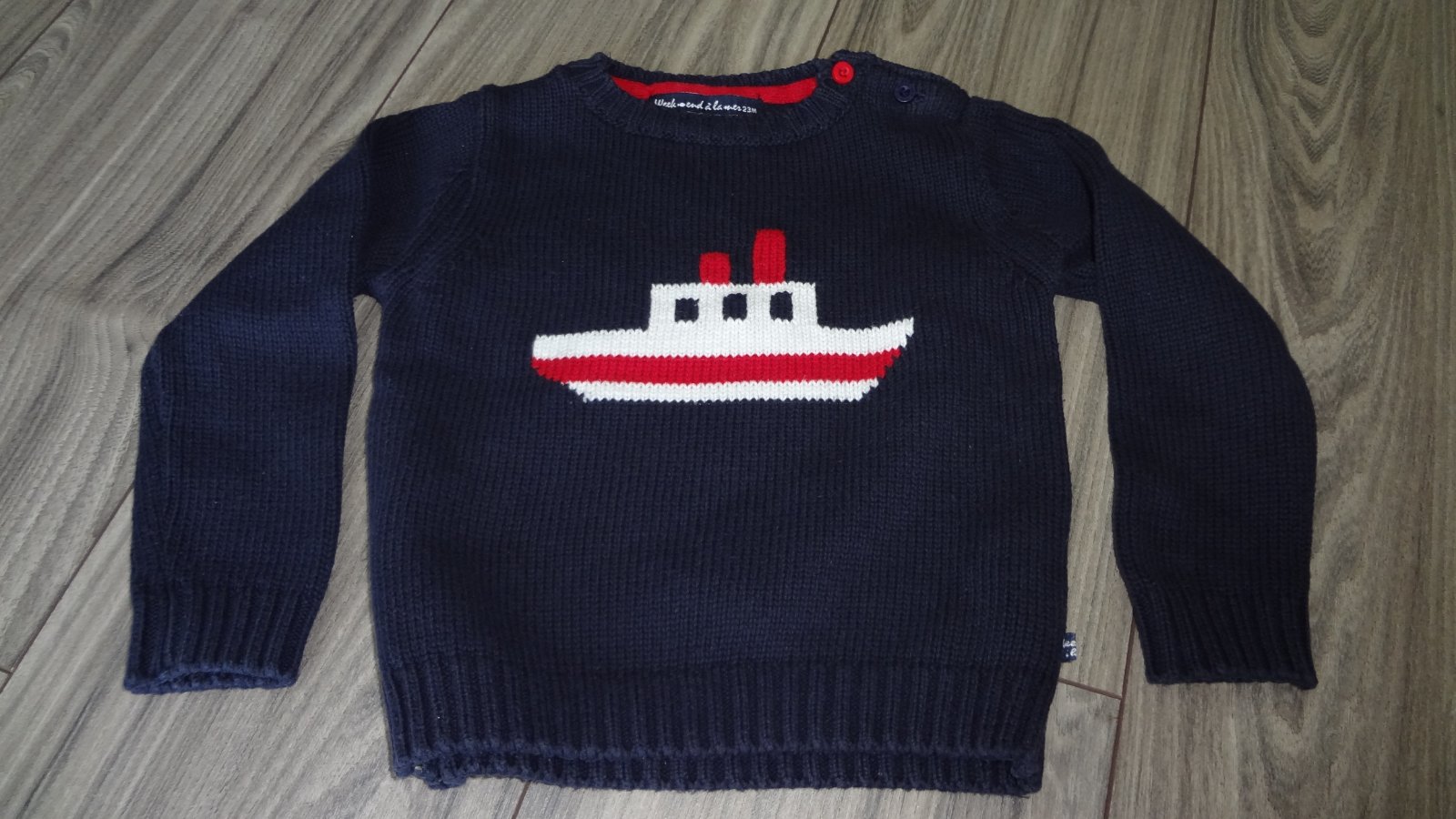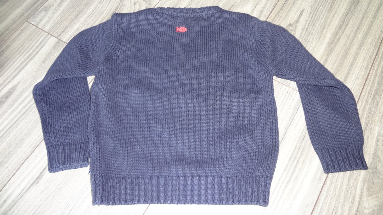 Predám tmavo-modrý sveter s loďkou, vo výbornom stave. zapínanie na ramene na 2 gombíčky. veľkosť píše na 23 mesačné dieťa, je to veľkosť 86-92. Rozmery: celková dlžka 34cm, dlžka od podpazušia - 21cm, dlžka rukáva od podpazušia 25cm, dlžka rukáva od ramena 32cm, šírka pod pazuchami 30cm. cena 5 eur.