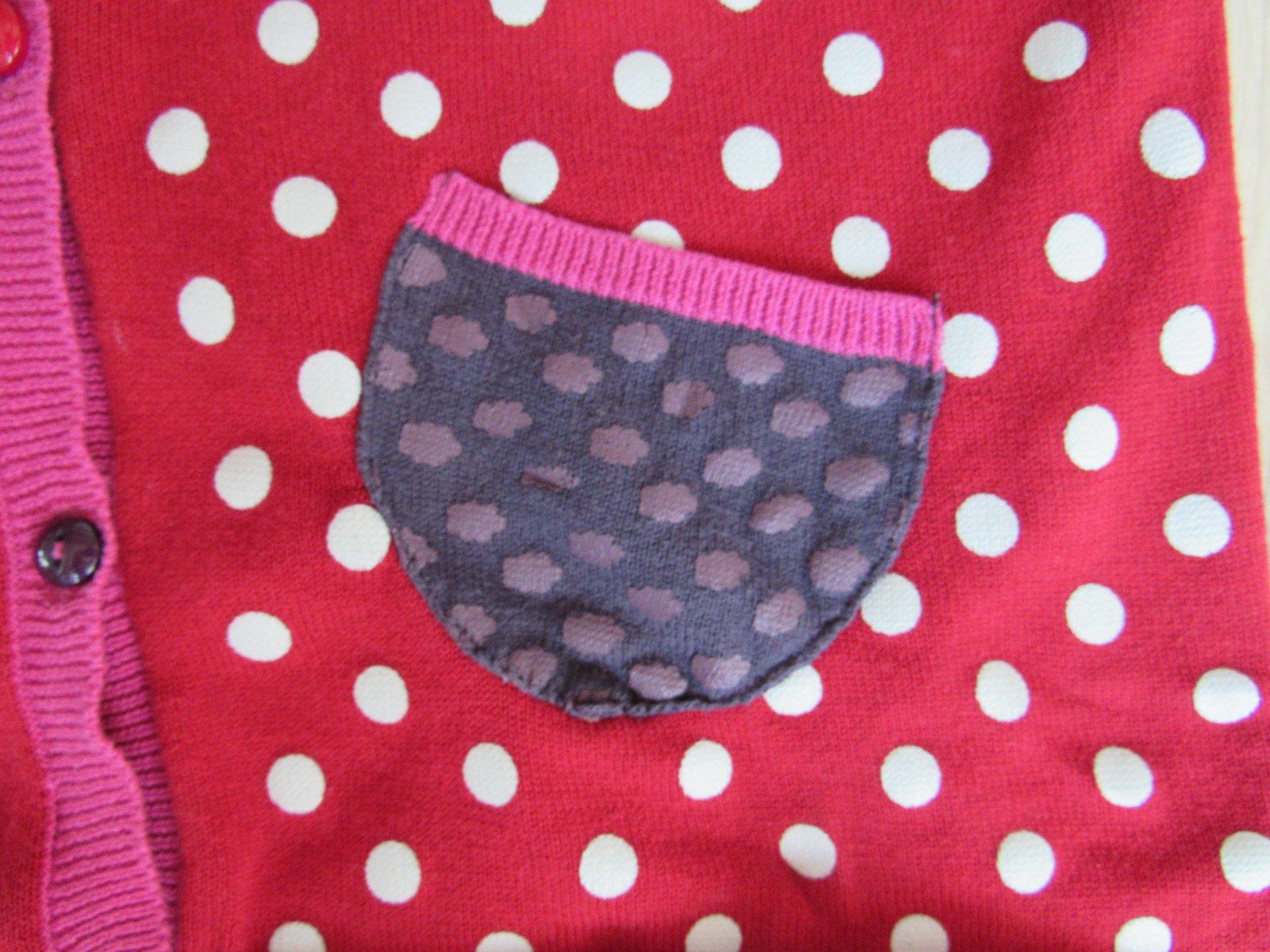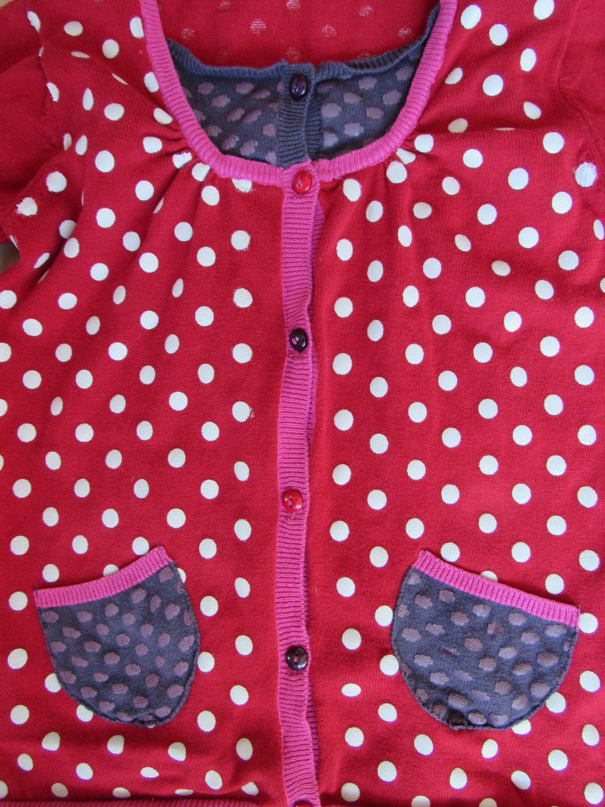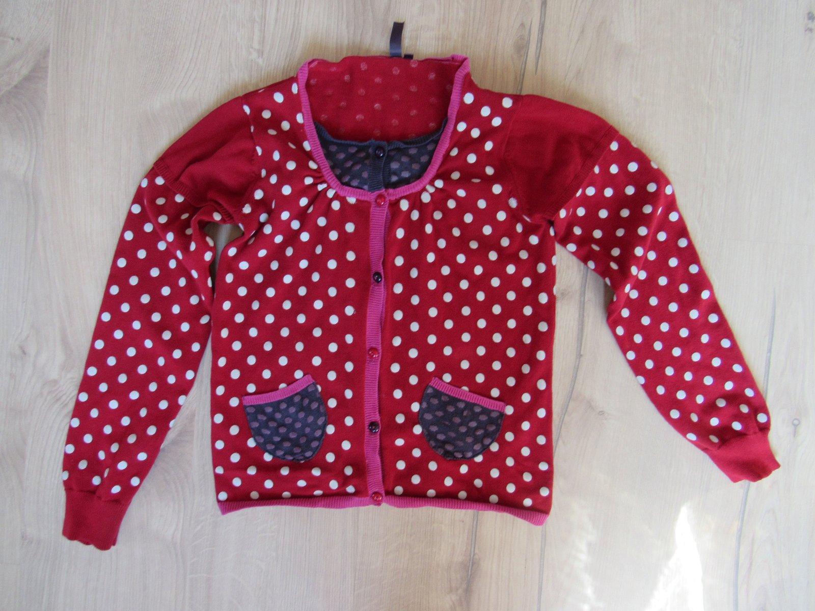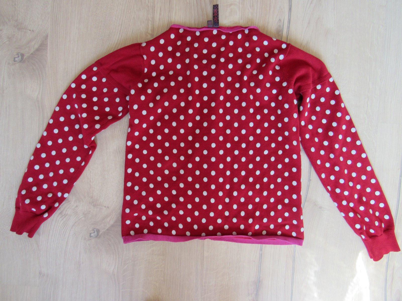 Perfektný nosený stav. Veľmi milý tmavočervený bodkovaný svetrík s krásnymi detailami.
