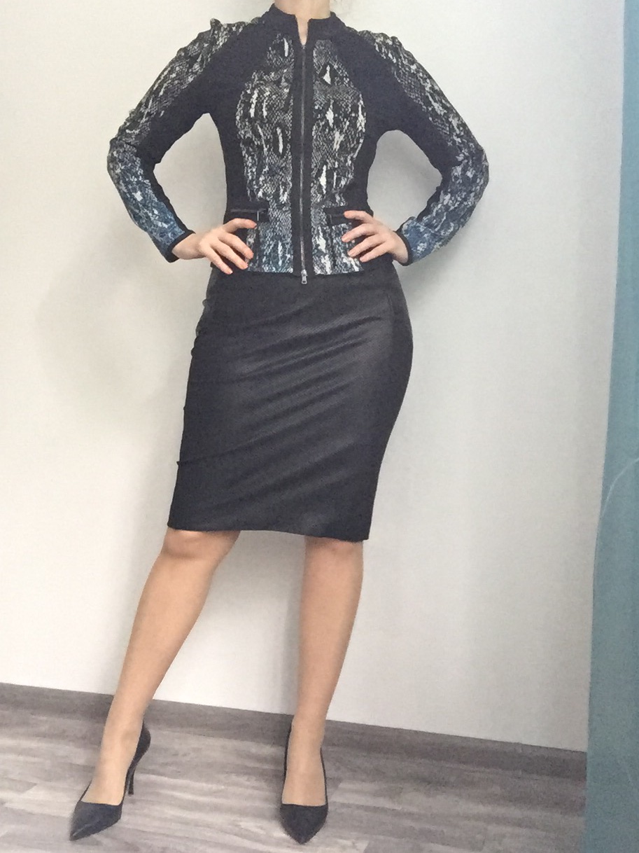 Original Marc Cain mikina, velkost S, (xs), cierna farba v kombinacii s mitaciou hada v modro bielej farbe, super stav, len raz vzata.