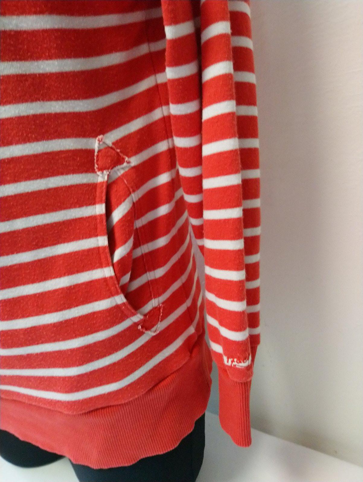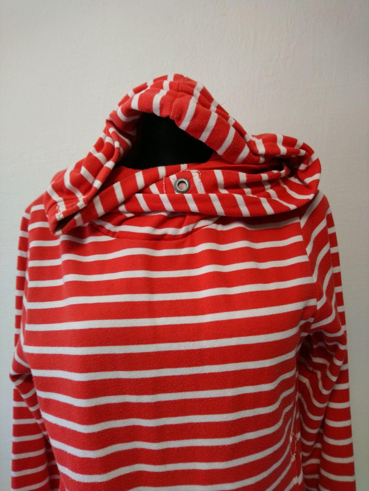dámska pásikavá červe nobiela mikina s kapucňou, vrecká,