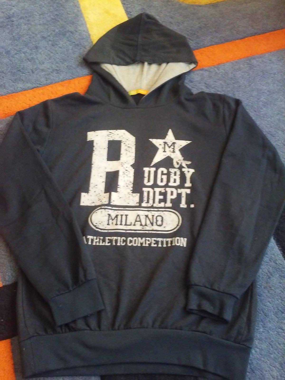 Predám nosenú mikinu. Je navliekacia. Má jemnučké žmolky a aj farba už je menej výrazná, ale dá sa ešte ponosiť, nie je potrhaná. Veľkosť je na nej uvedená 14. Rozmery: plecia - 40cm, rukáv - 55cm, dĺžka od pleca dole - 57cm.