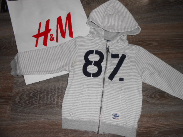 26. H&M frajerská mikina vo velkosti 92 , v super stave, jedine vzadu na pravom rukave svetle fliačiky, nič strašne inak bez flakov a dier, dlžka je 38cm, dlžka rukava od krku je 37cm a širka v podpazuší je od 33x2cm do 36x2cm