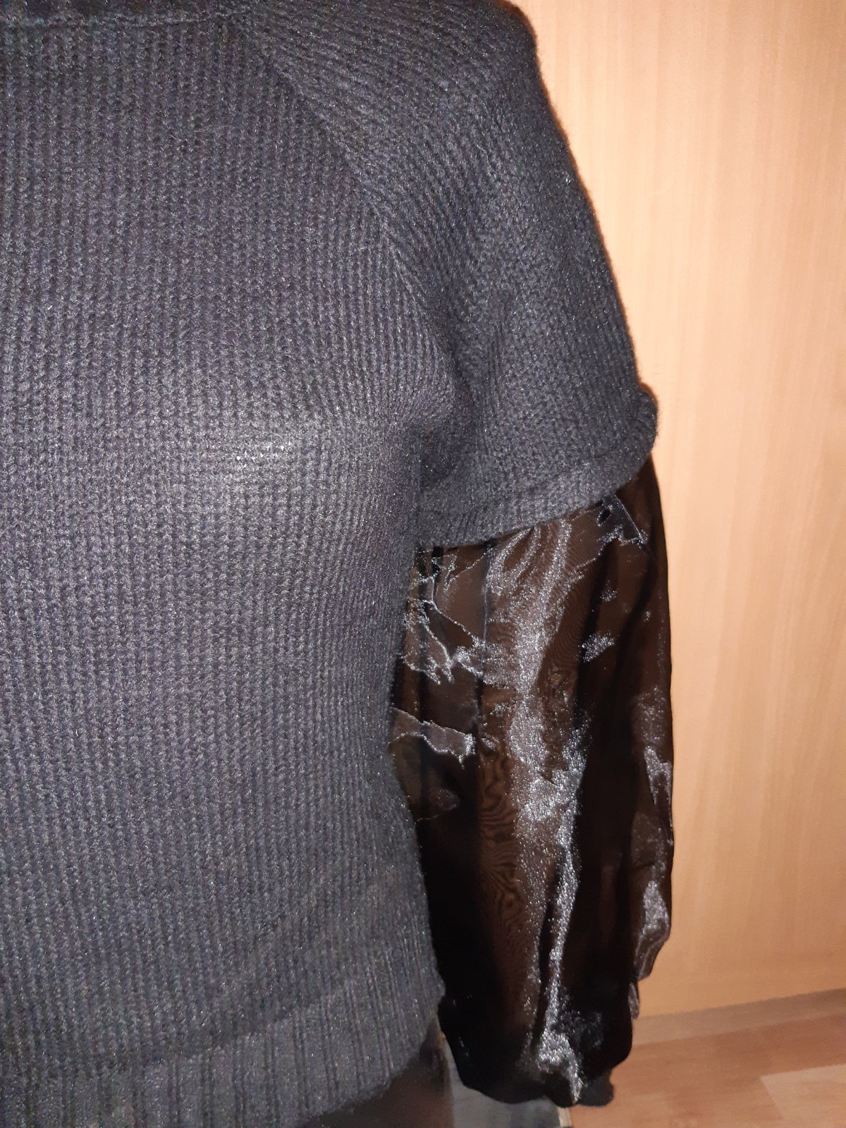 Damsky sveter velXS hrud 45cm dlzka 55cm rukav 57cm na nariasene tylove rukavy