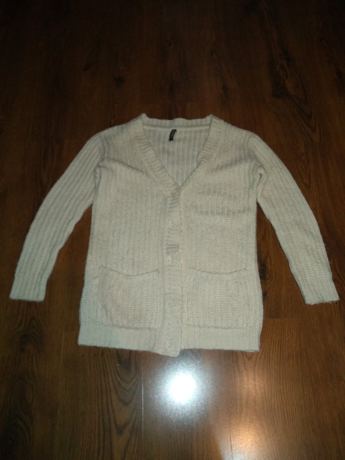 Krásny biely kardigán , Je pletený z hrubšej priadze , teplučký v perfektnom stave 1 x použitý.