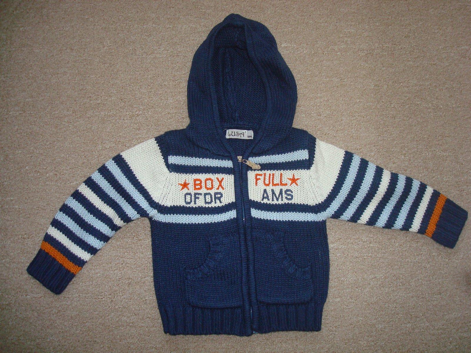 predam malo noseny pleteny sveter s kapucnou, bez poskodeni. Je uvedena vel. 18 mes.
