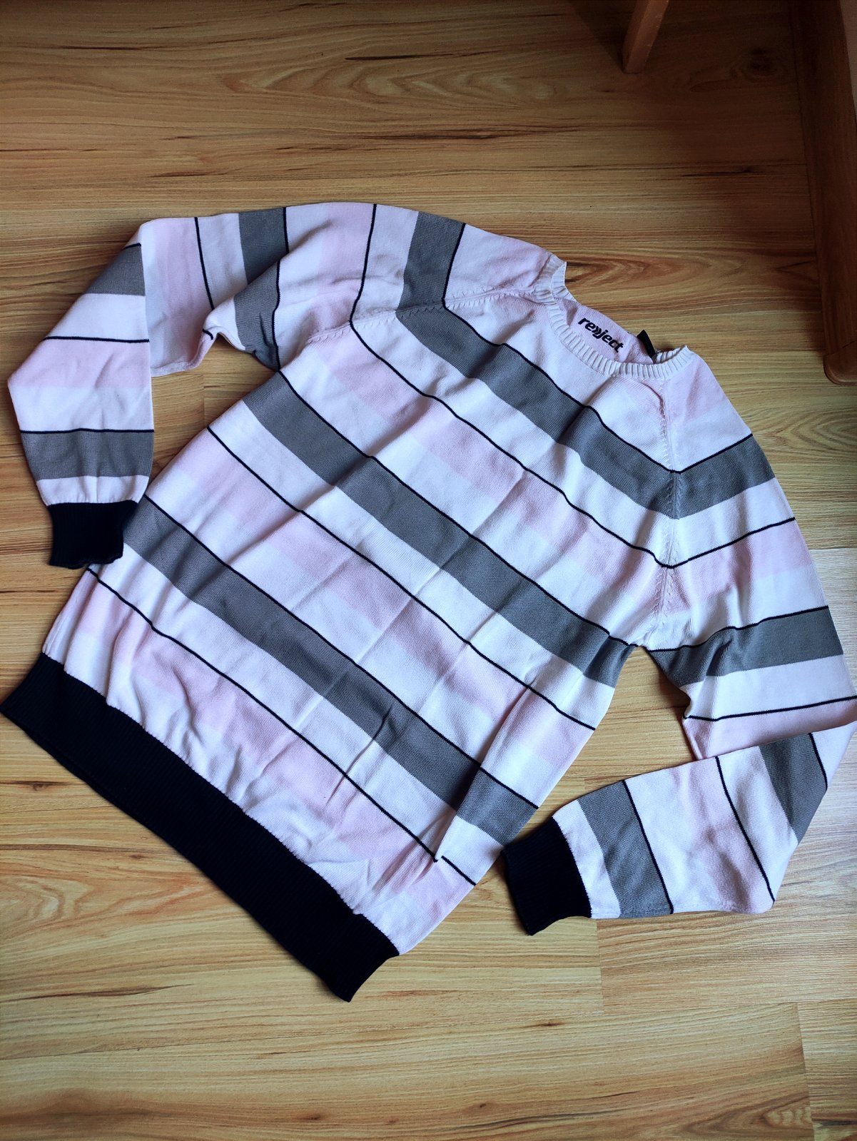 Pánsky svetrík, ružovo-šedo-bielo-čierny, velmi pekná kombinácia. Raz oblečený, stav ako nový. Je tenší, kľudne aj na košeľu. Sedí na S a M.