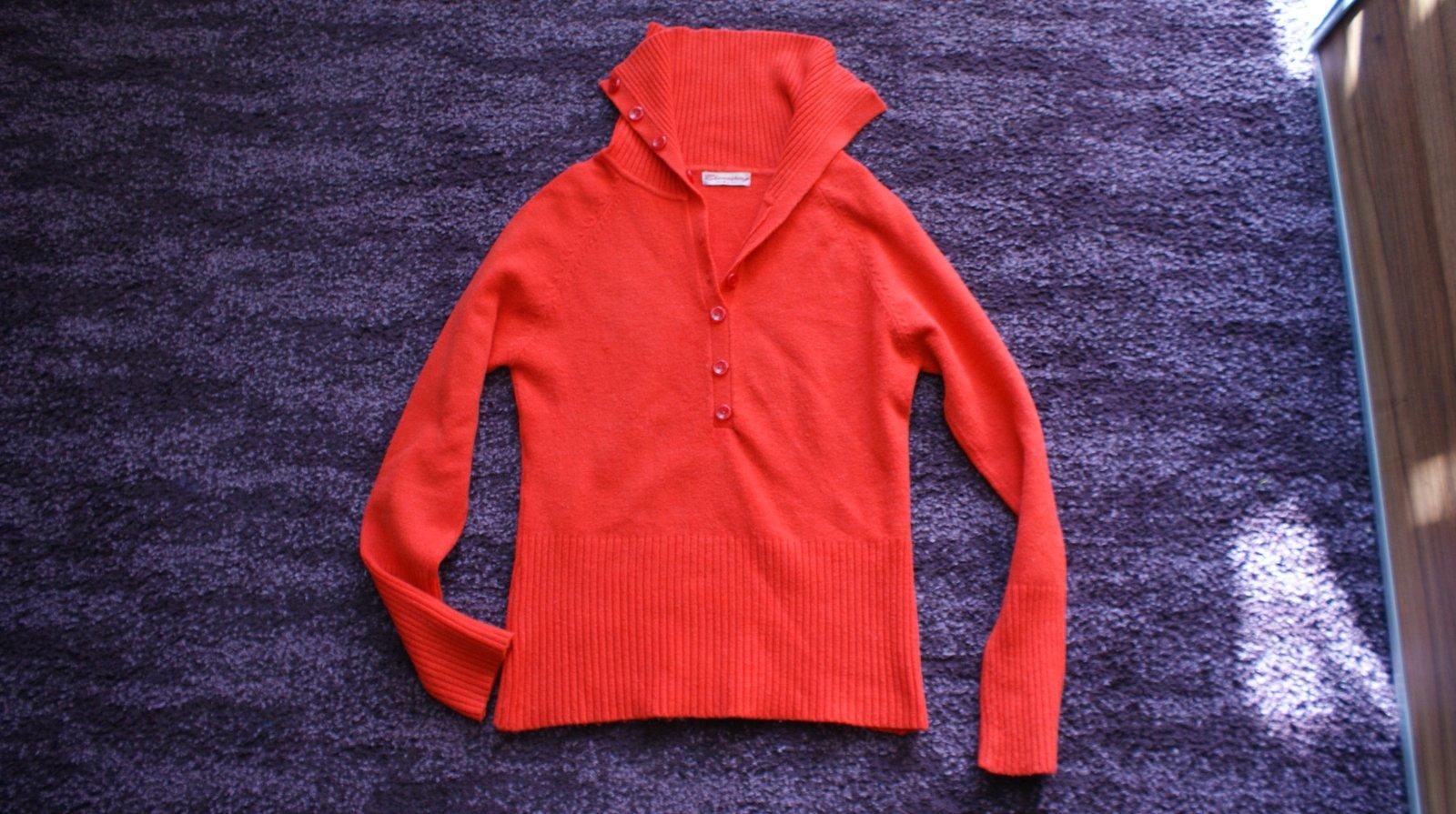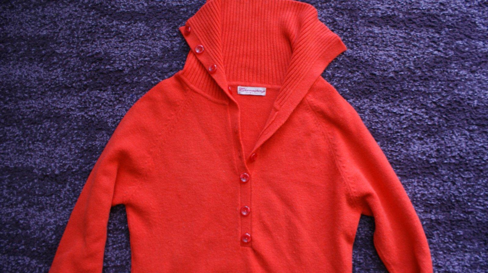 Ponukam krasny svetrik cez hlavu so stojacikom, da sa rozopnut gombickami po prsia. Fraba je taka vyrazna cervena az do oranzova. Sedi velkostne na S/M a bol obleceny asi 2x, takze vo velmi peknom stave. Postovne podla tarif SP.