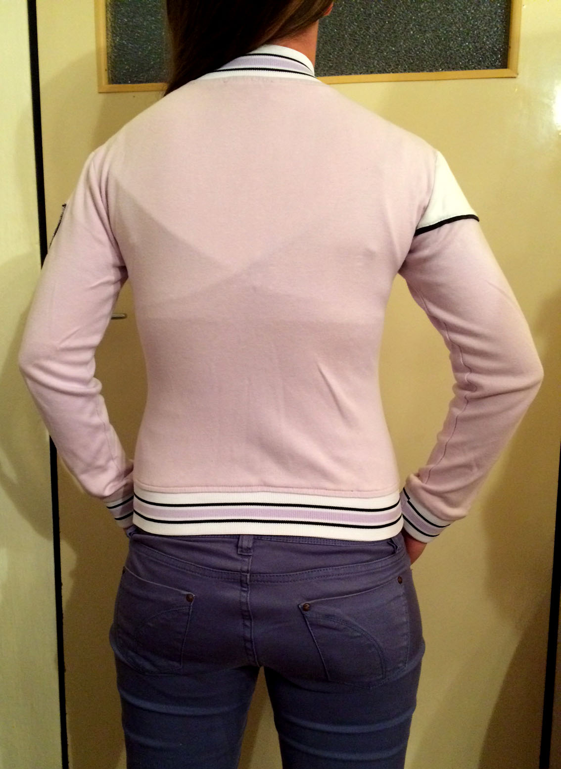 Pekná fialová bundička. Veľkosť je písaná M, ale skôr je to väčšie S. Veľmi príjemný materiál. Nosená, ale v dobrom stave.