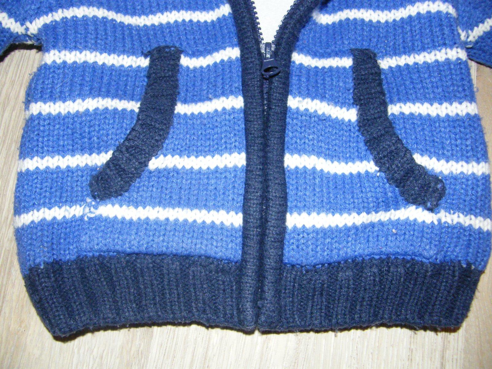 zvonku pletenina, zvnútra podšitý fleesom, teplučký, vhodný aj namiesto vetrovky na jar, jeseň, vo veľmi dobrom stave.