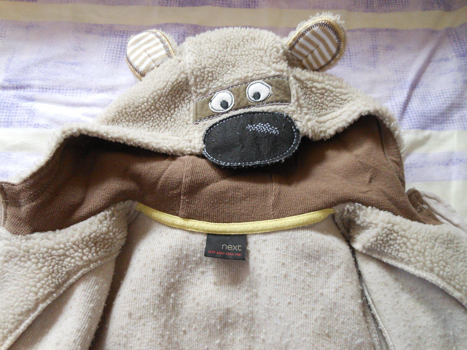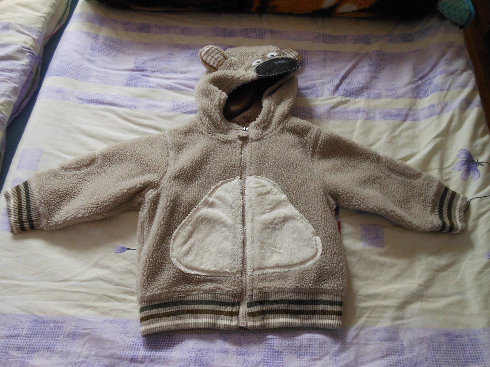 Predám krásnu máličko nosenú mývalovú mikinku Next, vačky na nej sú kožušinkové, veľkosť je 92, na 1 a 1/2 až 2 roky, ale ponosíte určite dlhšie, vo výbornom stave, len zvnútra žmolčeky. Rozmery cca: dĺžka 38cm, šírka 36cm, rukáv od kapucky 36cm, spodná dĺžka rukáva 25cm.