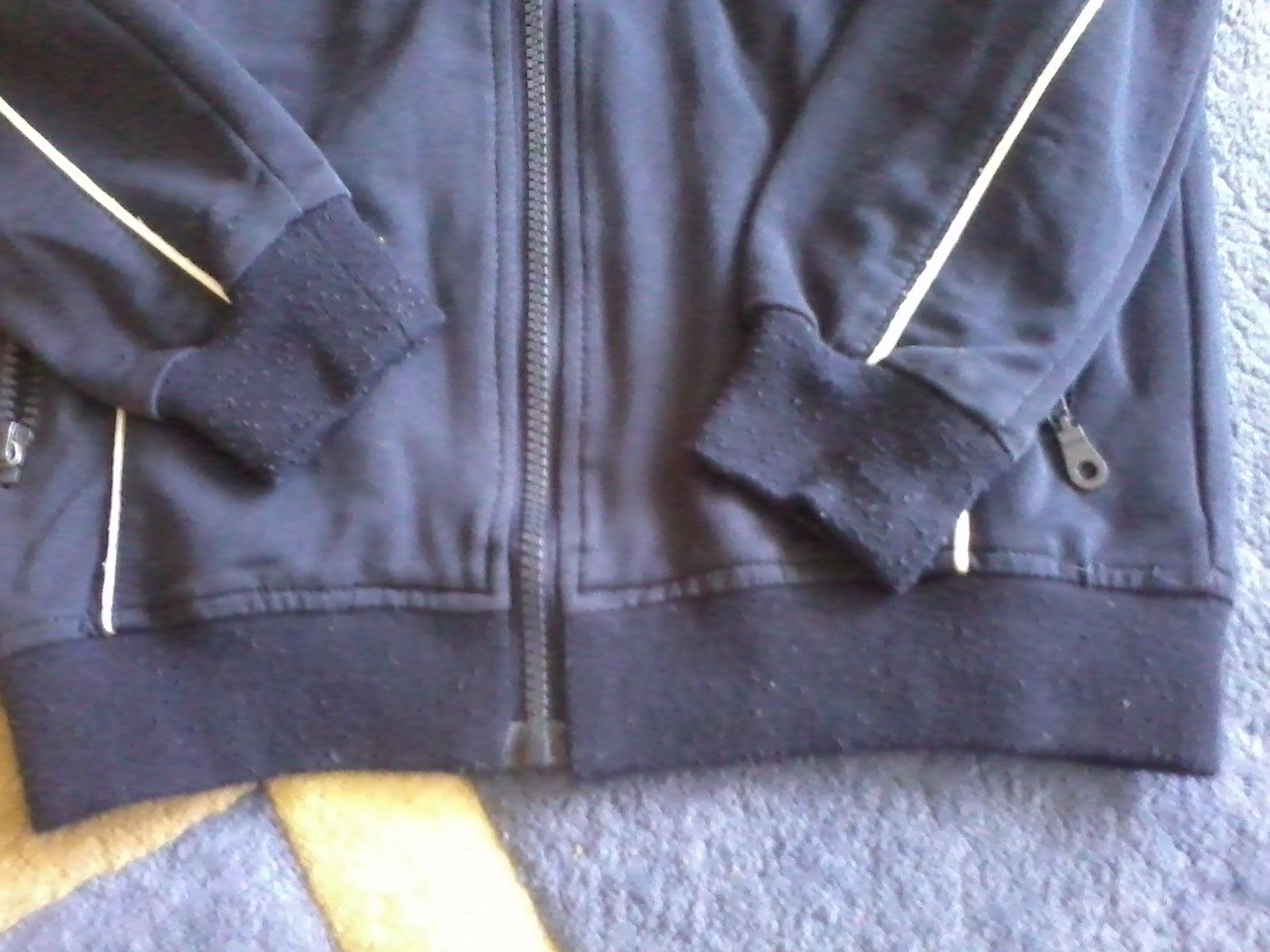Predám nosenú, ale veľmi peknú, mikinku. Syn ju nosil len na telesnú. Má troška ožmolkovanú gumičku v páse, na rukávkoch a okolo krku, ale nič hrozné.
