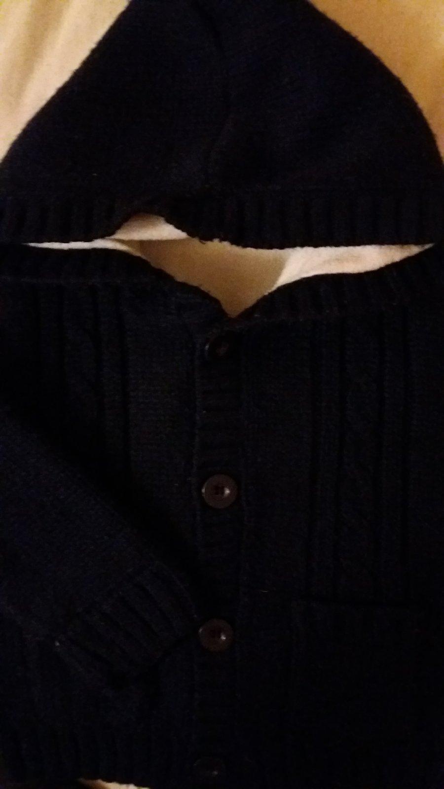 Pekný teplý svetrík tmavomodrej farby s kapucňou a uškami. Zn. Lupilu, veľ. 74/80. Bez poškodení, pekný stav. Osobný odber Prešov alebo Sabinov. Samozrejme pošlem aj poštou po prevode na účet.