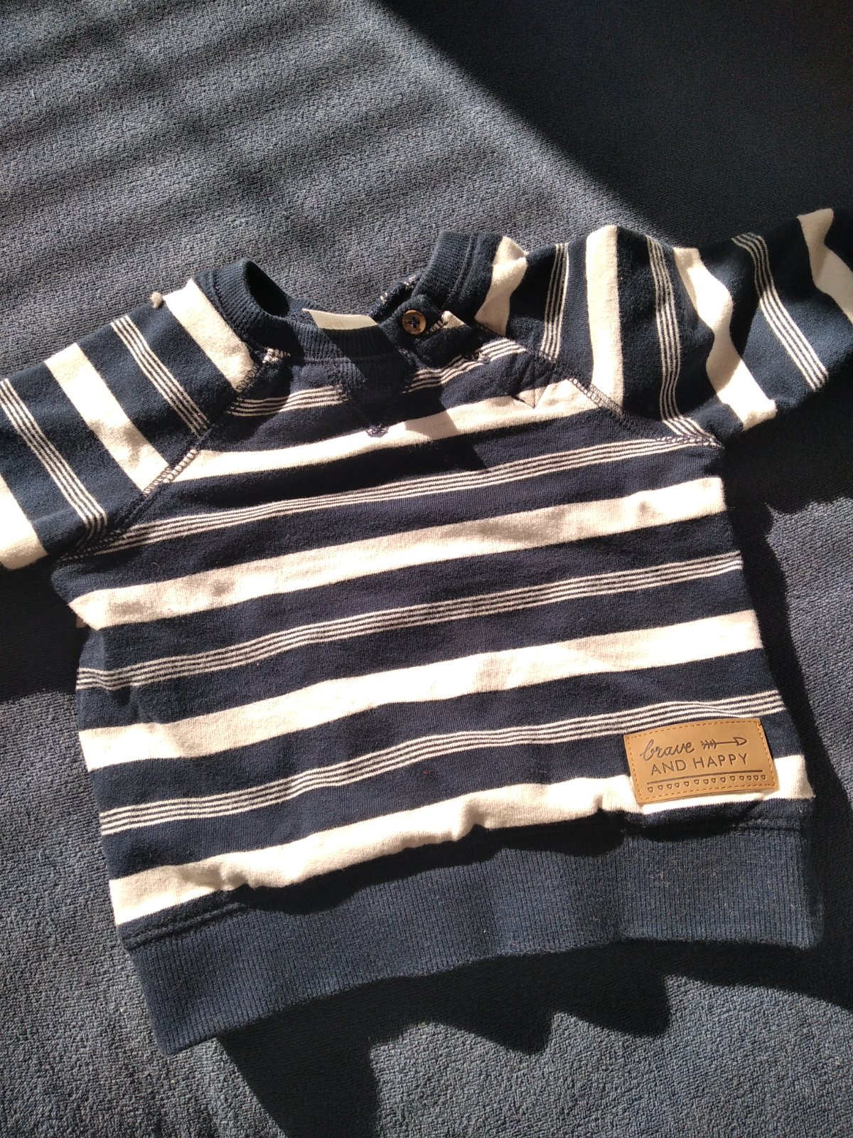 Predám mikinu s malým fliačikom, ktorý je zachytený na priloženej fotografii. Vzhľadom na farebnosť mikiny ho nie je moc vidieť, ale napriek tomu je to vada, takže znižujem cenu. Nosené veľmi málo....