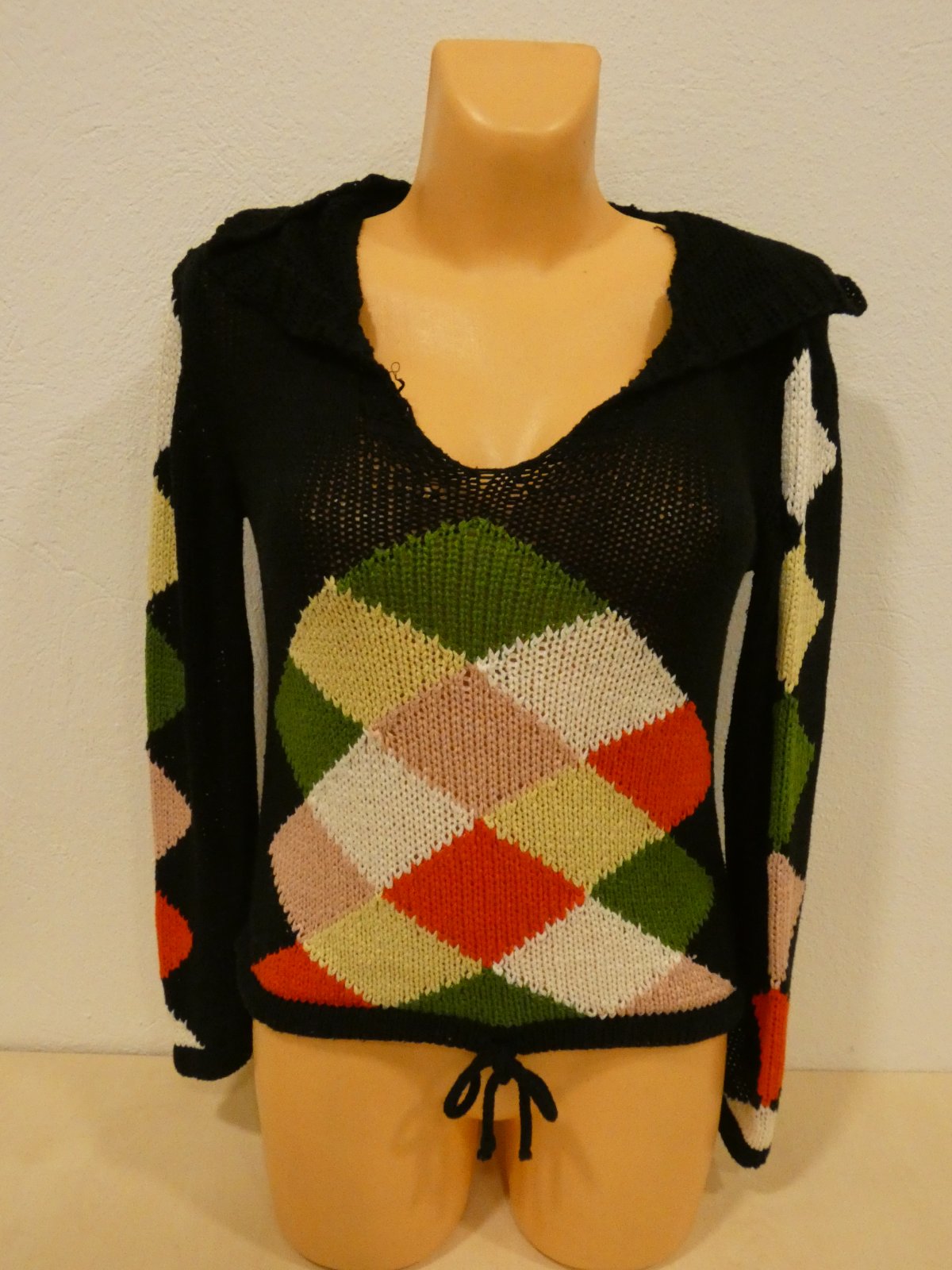 Noseny,obleceny asi dvakrat.Material 50% vlna a 50% akrylik.Rozmery sirka 46 cm x 2, dlzka 54 cm,dlzka rukava 57 cm.K cene si treba priratat este postovne podla tarif Slovenskej posty.