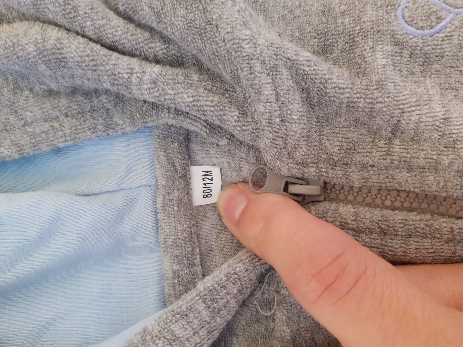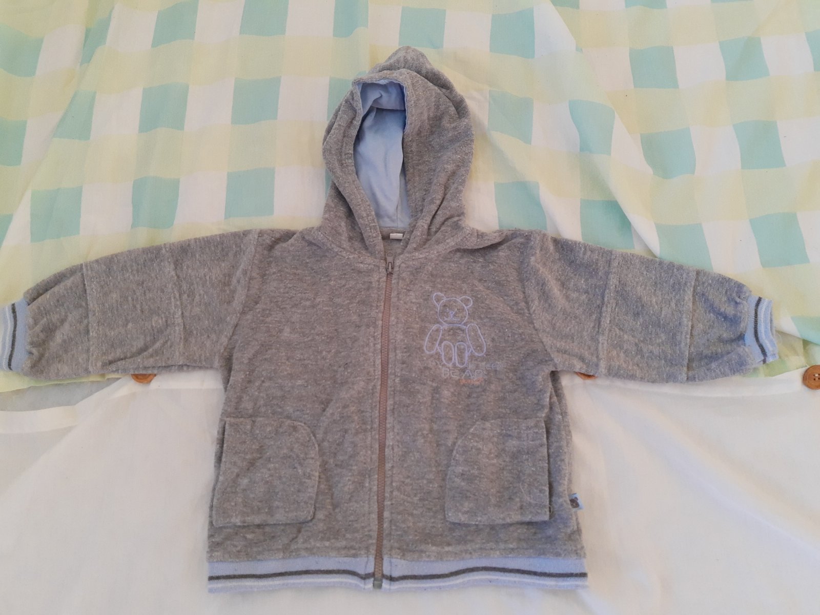 Pekná mikinka v zachovalom stave, trošku vidieť pranie na patentoch. Veľkosť uvedená 86, ale podľa mňa menšie + poštovné