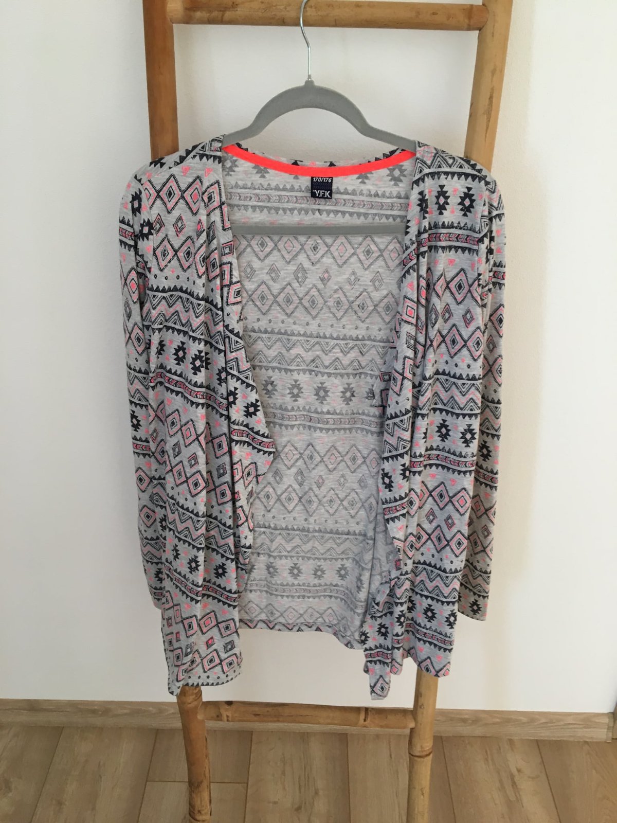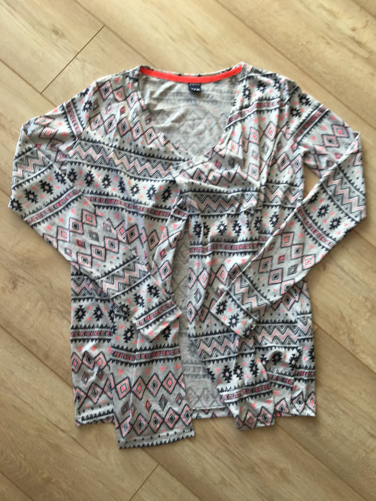 Predám detský vzorovaný farebný kardigán. Veľkosť kardigána je 170/176. Kardigán nebol vôbec nosený a je bez akéhokoľvek poškodenia.