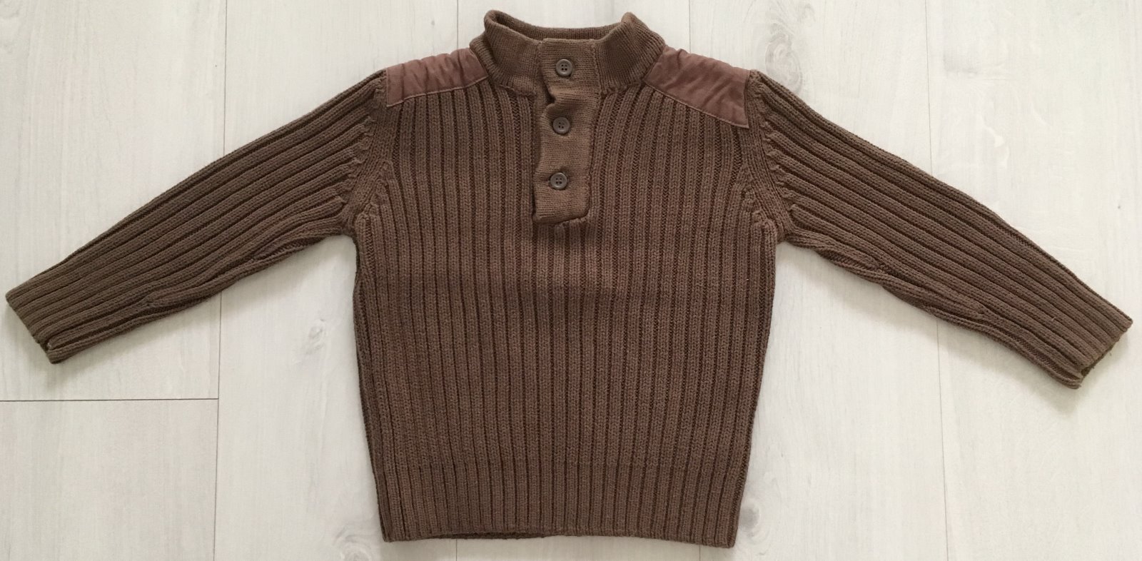 Predám chlapčenský teplý svetrík, značka Mothercare, veľkosť na 3-4 roky, farba hnedá, svetrík bol minimálne nosený, cena 4.99 Eur bez poštovného (poštovné podľa aktuálneho cenníka Slovenskej pošty), zasielam ihneď po zaplatení, nezasielam na vyskúšanie.