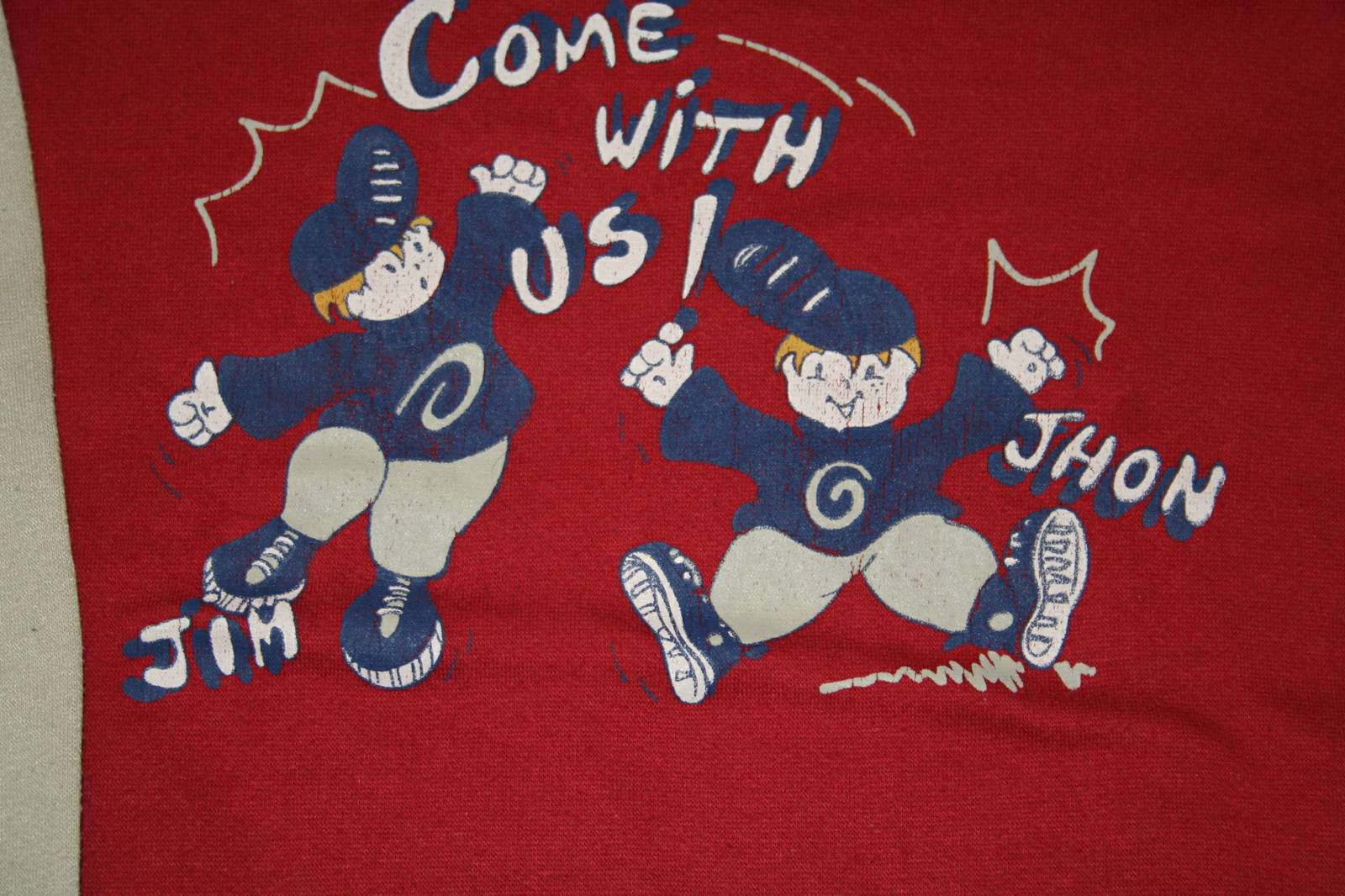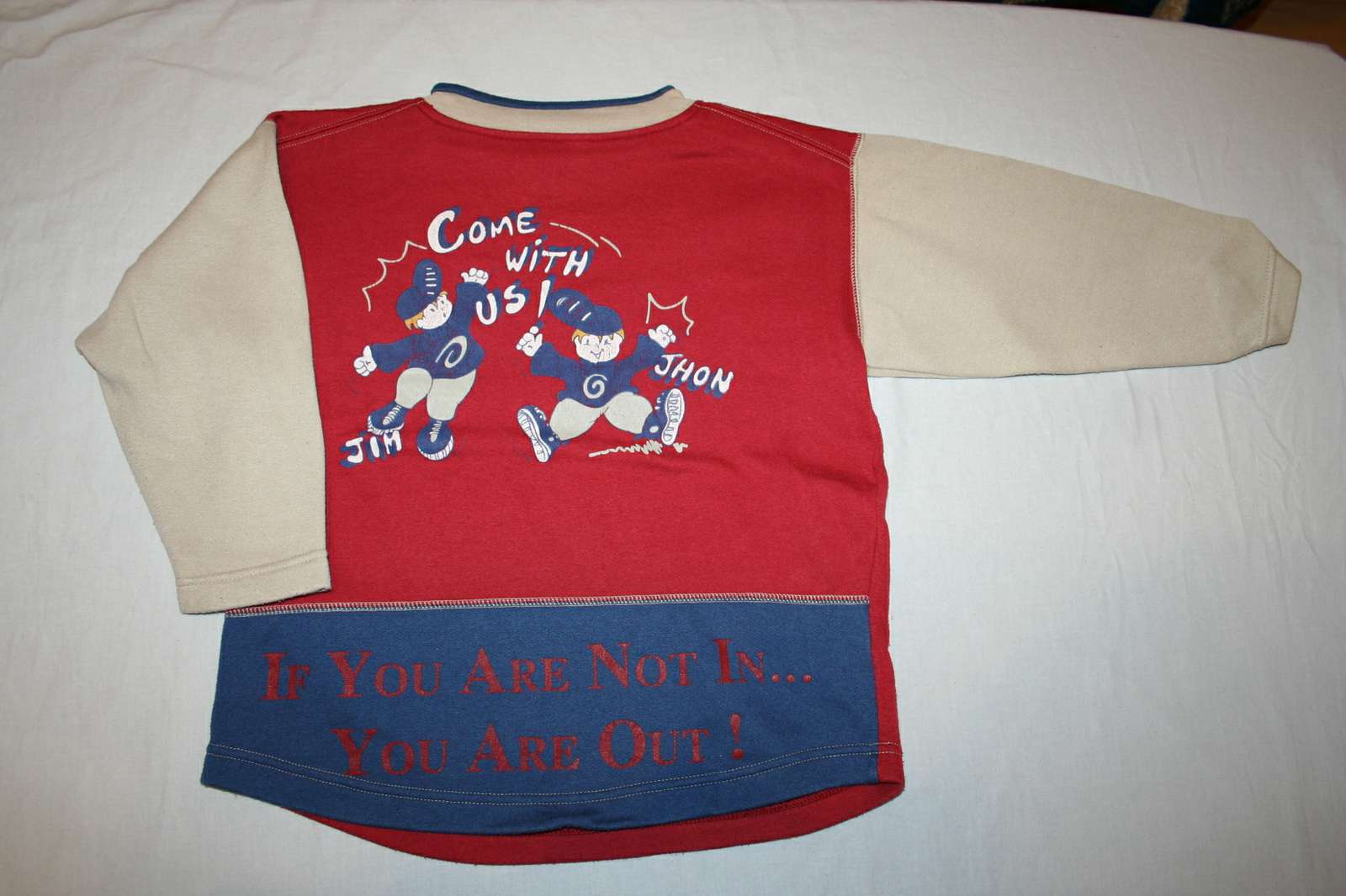 Nosená mikina v dobrom stave, ma bežne žmolky od prania. Na fotke sú trosku skreslene farby, ta červena je tmavšia niečo také ako je nápis v modrej časti.