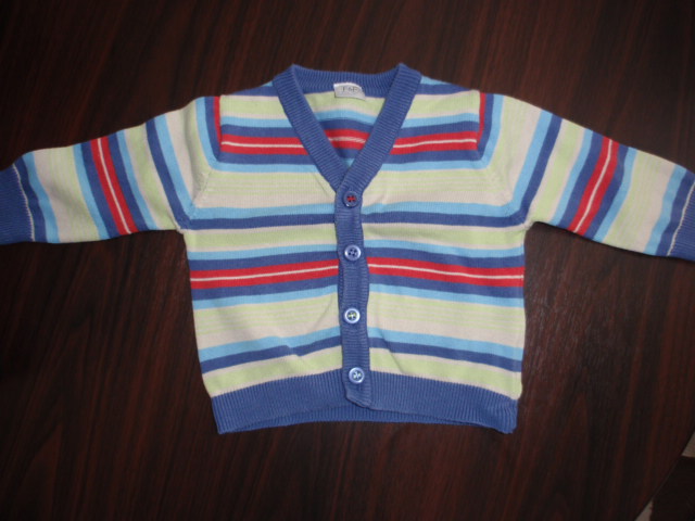 Farebný sveter značky F&F, štítok chýba, ale prirovnaním sedí na veľkosť 68, tak sme aj nosili, cena 2€.