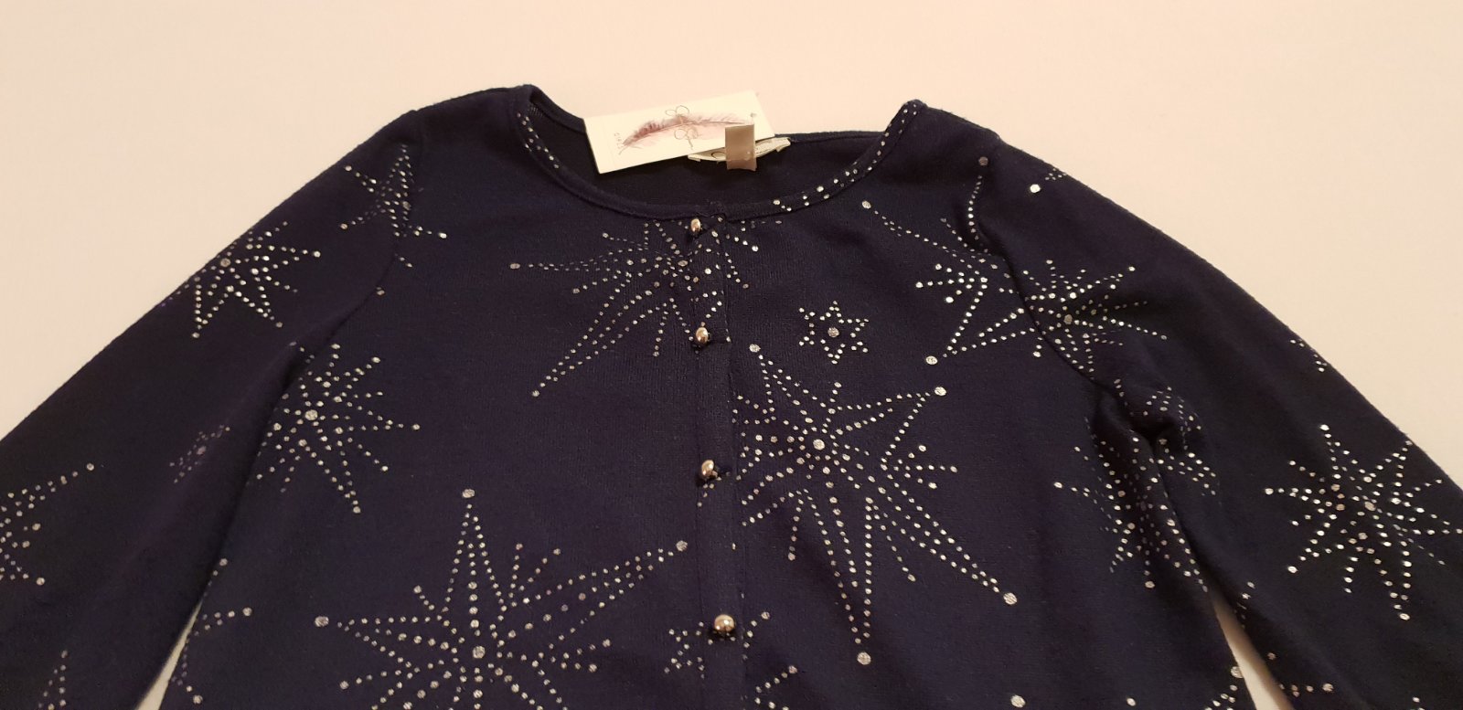 Predám pekný slávnostný svetrík cez hlavu, tenší, dá sa obliecť ako náhrada trička s dlhým rukávom.