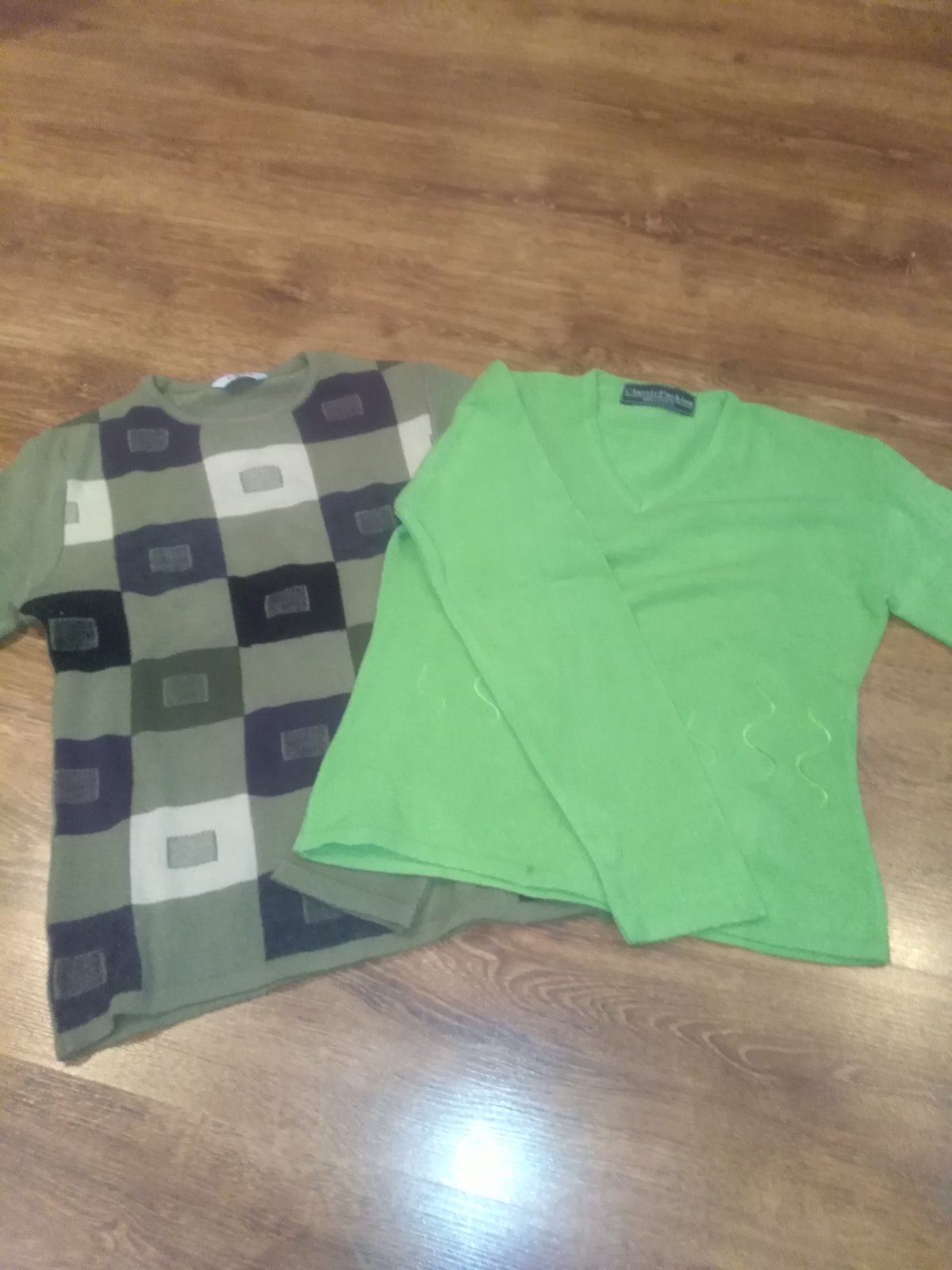 Málo nosené svetre, elastické, prispôsobibé. Pri záujme rada premeriam. Cena za oba 6,50. Pri kúpe zvlášť je svetlo zelený za 3 eura a tmavý vzorovaný za 4 eura.