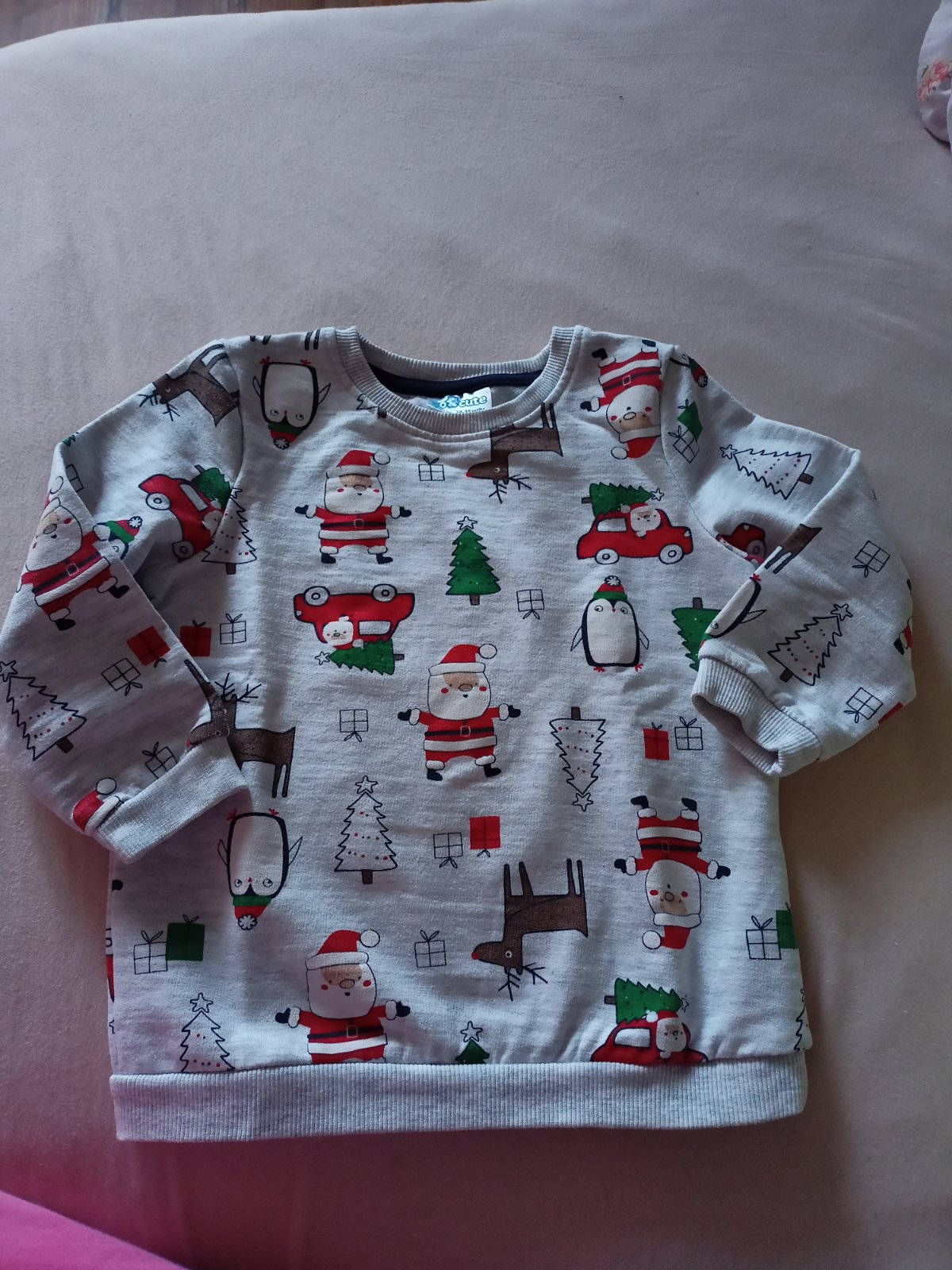 Krásna tepláková mikinka s vianočným motívom j, synček mal oblečené len 1x na Vianoce akosi nám.nesadol strih,