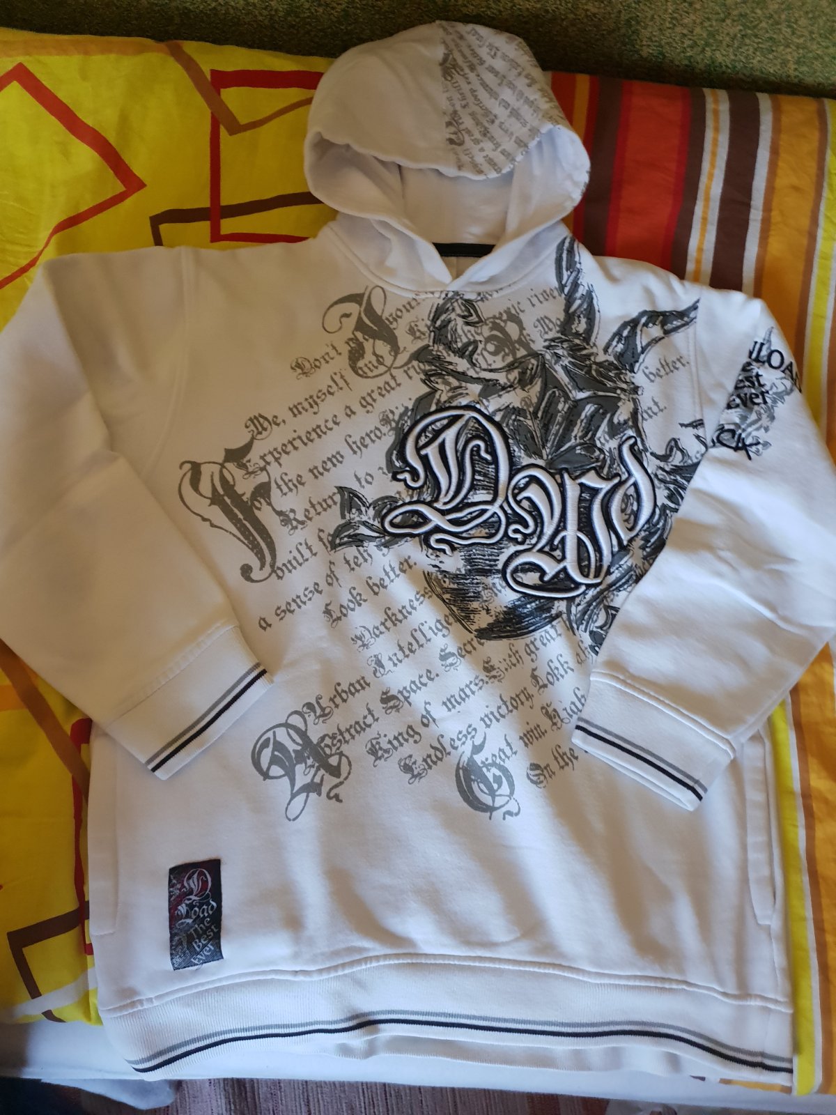 Je to nosená mikina v super stave.Dlžka 65cm,širka pod pazuchami 54x2cm,rukáv od krku 65cm,od pleca 52cm.Na prípadné otázky rada odpoviem.