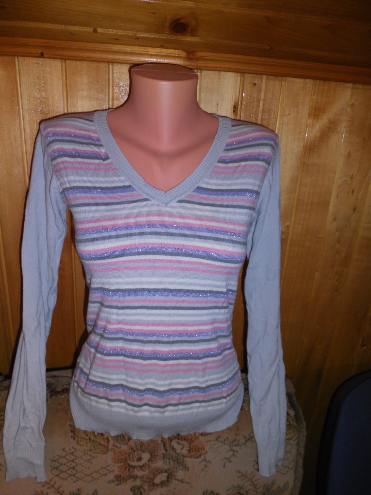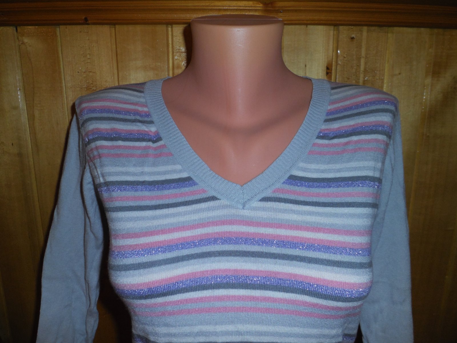 Svetlosedy svetrik TH, obleceny 1x, kupeny v usa. Dlzka 62 cm, širka v podpazusi 41 cm, rukav 60 cm