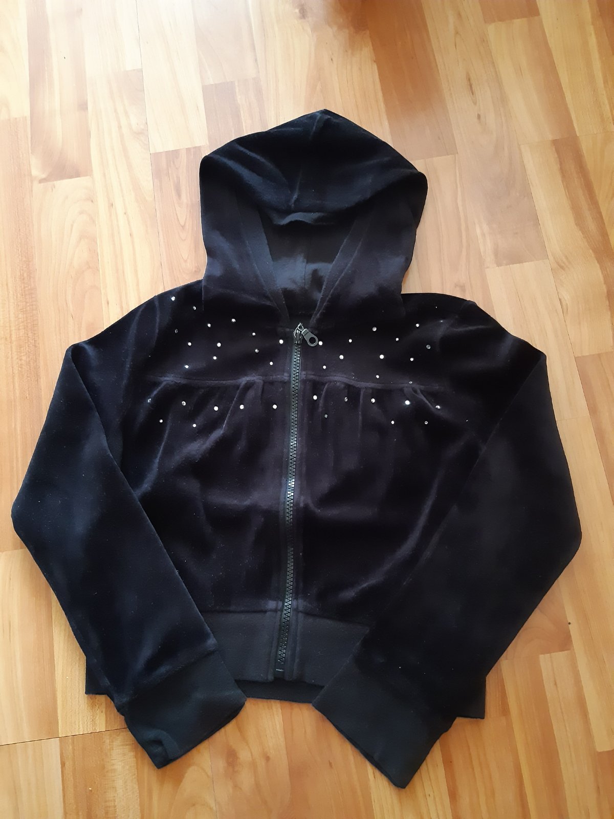 Mikina kratšia,do pasa.Nosena,no stae pekna.Velkost pisana 9-10 rokov.Je semišova.