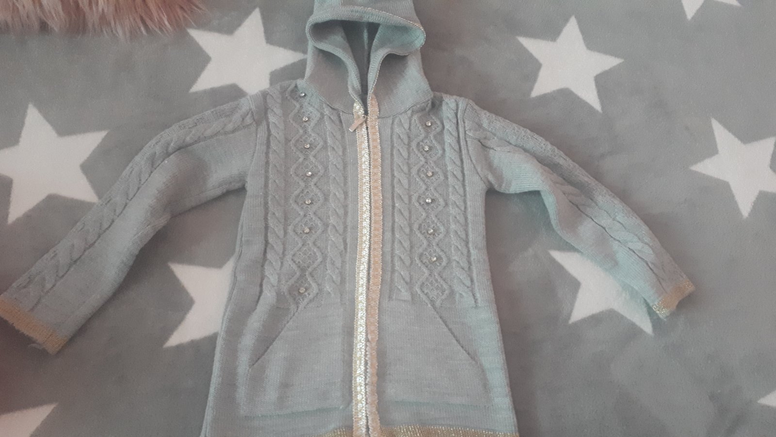 Predam krasny svetrik pleteny vzor vysivany so zlatou nitkou v top stave