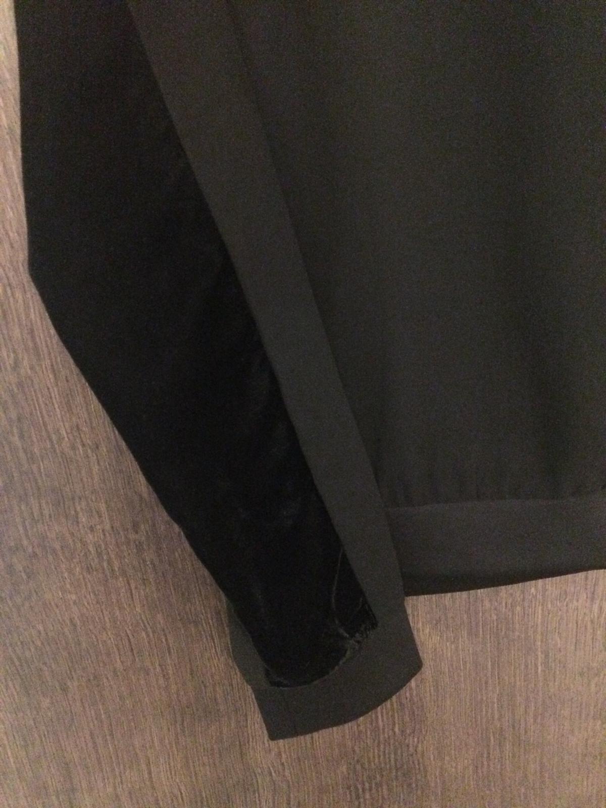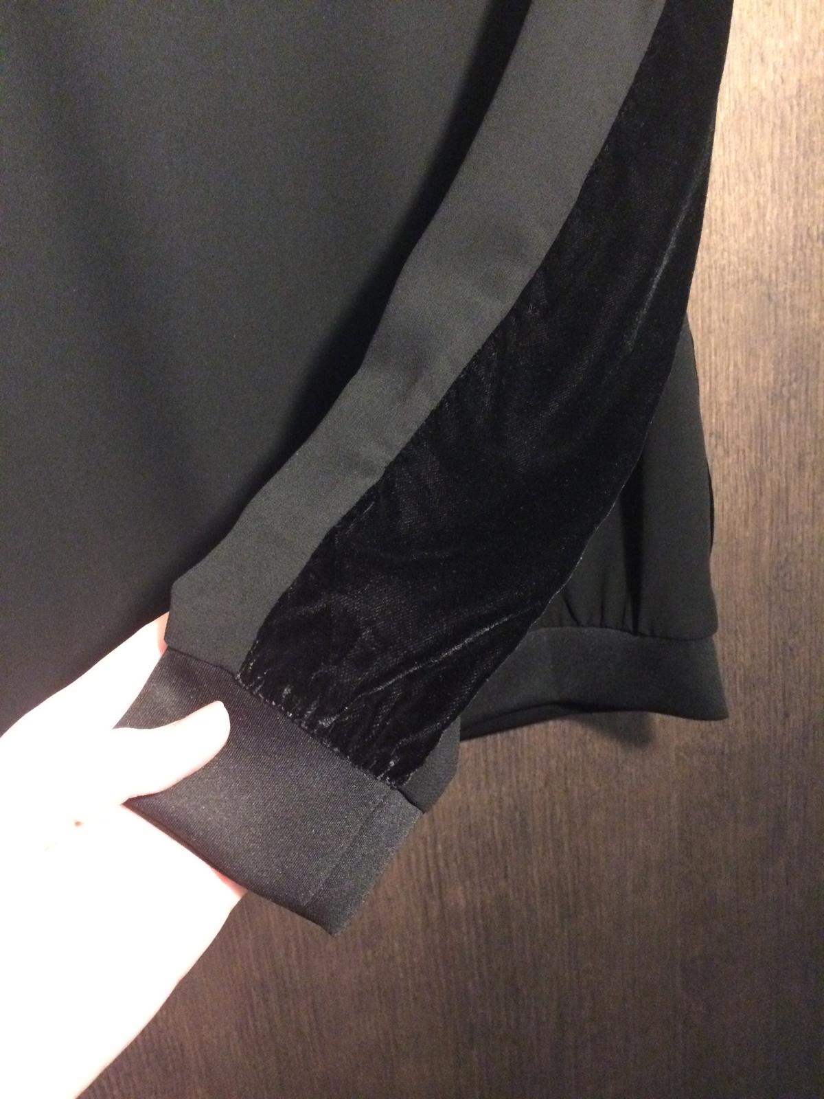 Mikina vpredu zamatová, vzadu blúzkový materiál, ukončená do patentov, veľkosť 6, vhodná k džínsom, ale aj k elegantnejším nohaviciam/sukni. Stav: bez jediného poškodenia, vyskúšaná.