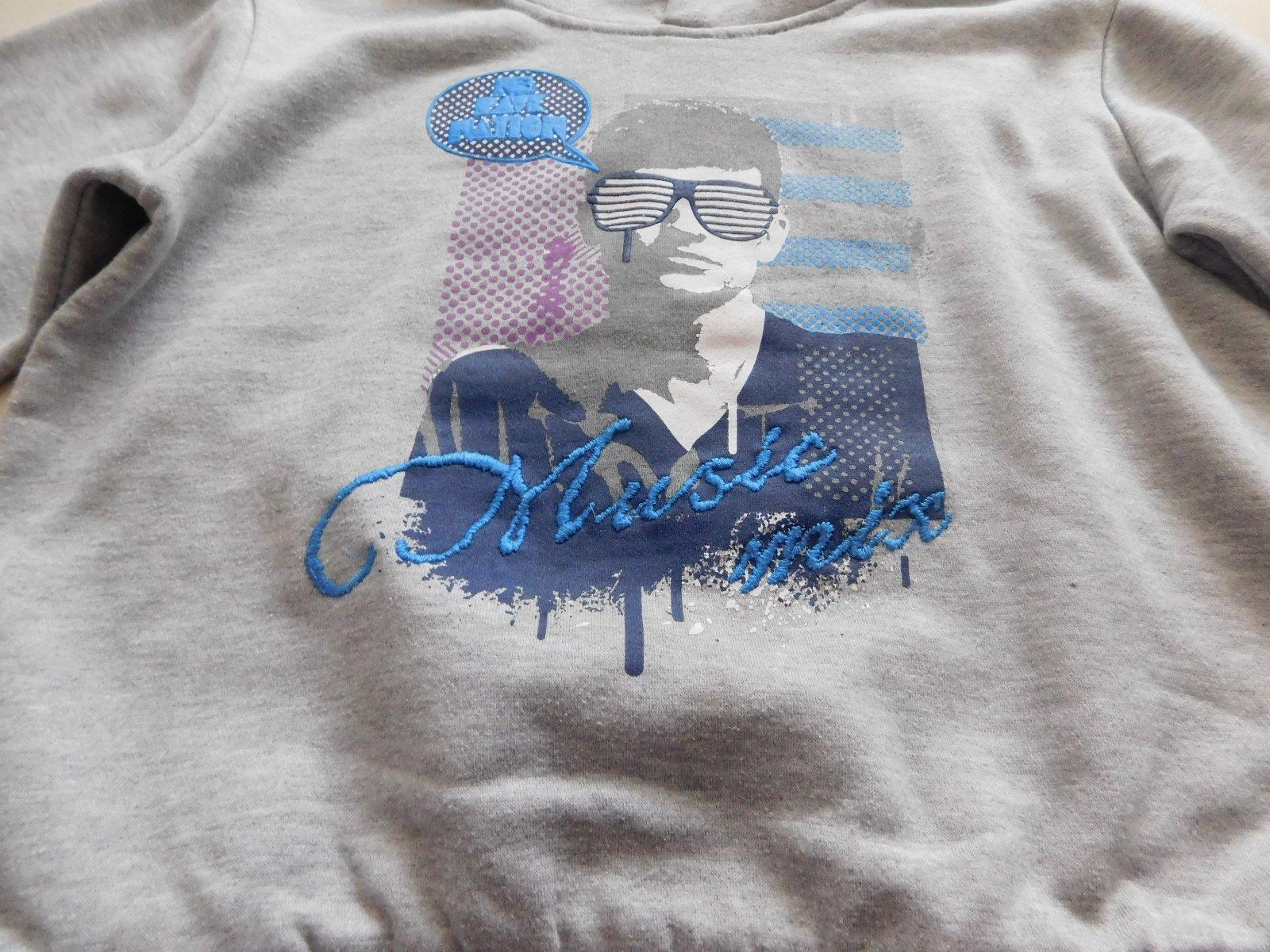 Sivomodrá mikina, 80% bavlna, žiadne žmolky, bola obľúbená,ale stále bez poškodení v SUPER STAVE. Veľkosť 146. Z časových dôvodov nemeriam! Pošta podľa cenníka pošty!