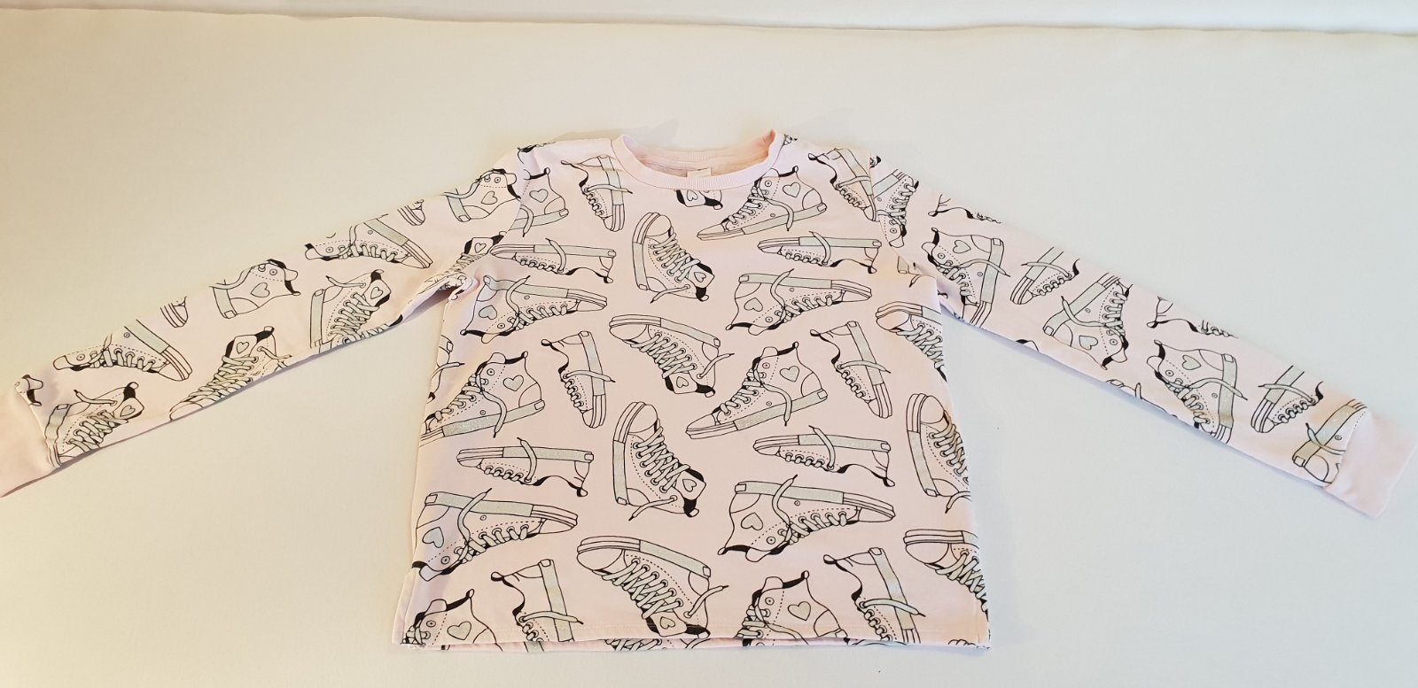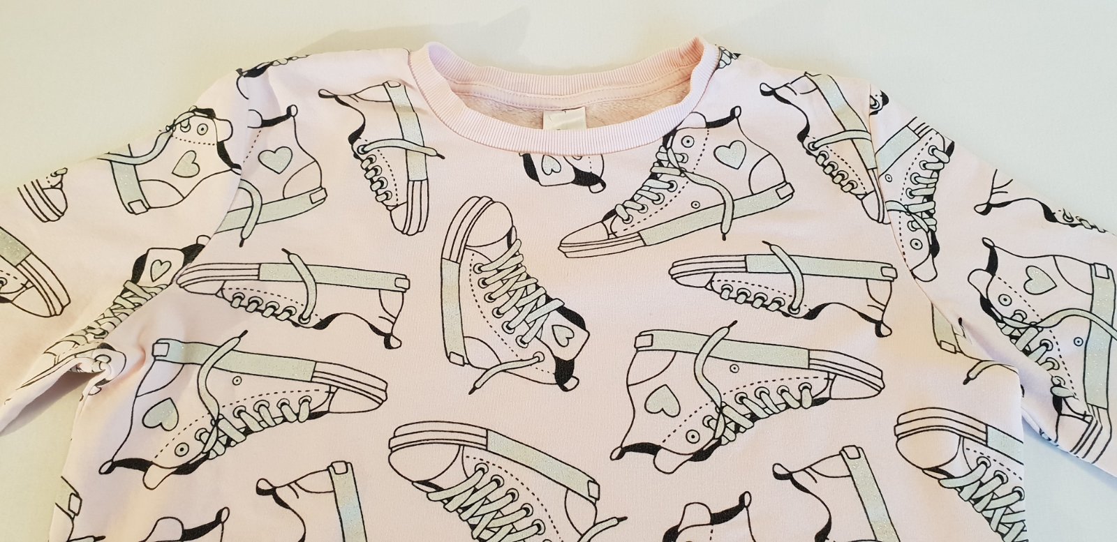 Nosená mikina, na rukávoch minižmolčeky, stredne hrubá. Dl. 54, š. 45, rukáv od krku 65cm.