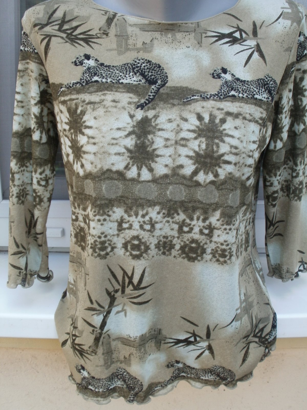 Dlžka 63 cm, šírka 50- 55 cm. 3/4 rukáv.