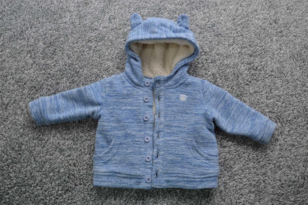 Predám detskú málo nosenú mäkkučkú plyšovú mikinu zn. Next. Veľkosť 6 - 9 mesiacov, ale v pohode ju oblečie ešte aj ročné dieťa. Trup podšitý mäkkučkým fleeceom, rukávy podšité látkou, kapucňa s medvedíkovskými uškami. Vpredu obrázok medvedíka. Zapínanie na gombíky. Materiál: 100 % PES.
