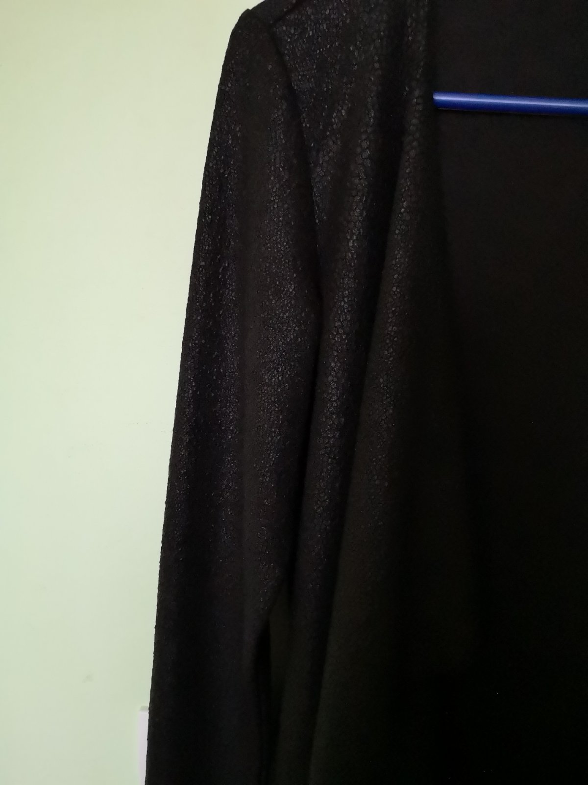 Raz vzatý ak vôbec, top stav, príjemný mäkký. Na prednom diele aplikácia čiernych kamienkov. Dĺžka, sirka, rukáv na foto. Cena bez poštovného.