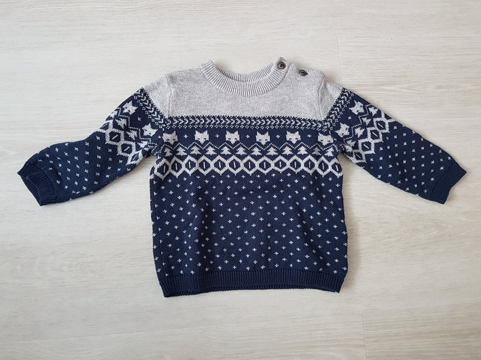 Predám párkrát oblečený svetrík značky H&M. Je veľmi príjemný, mäkký. Oblečený ho mal synček len párkrát, je bez akýchkoľvek poškodení. Veľkosť je písaná 74, ale podľa mňa skôr sedí na 80. Pôvodná cena 12.99€.