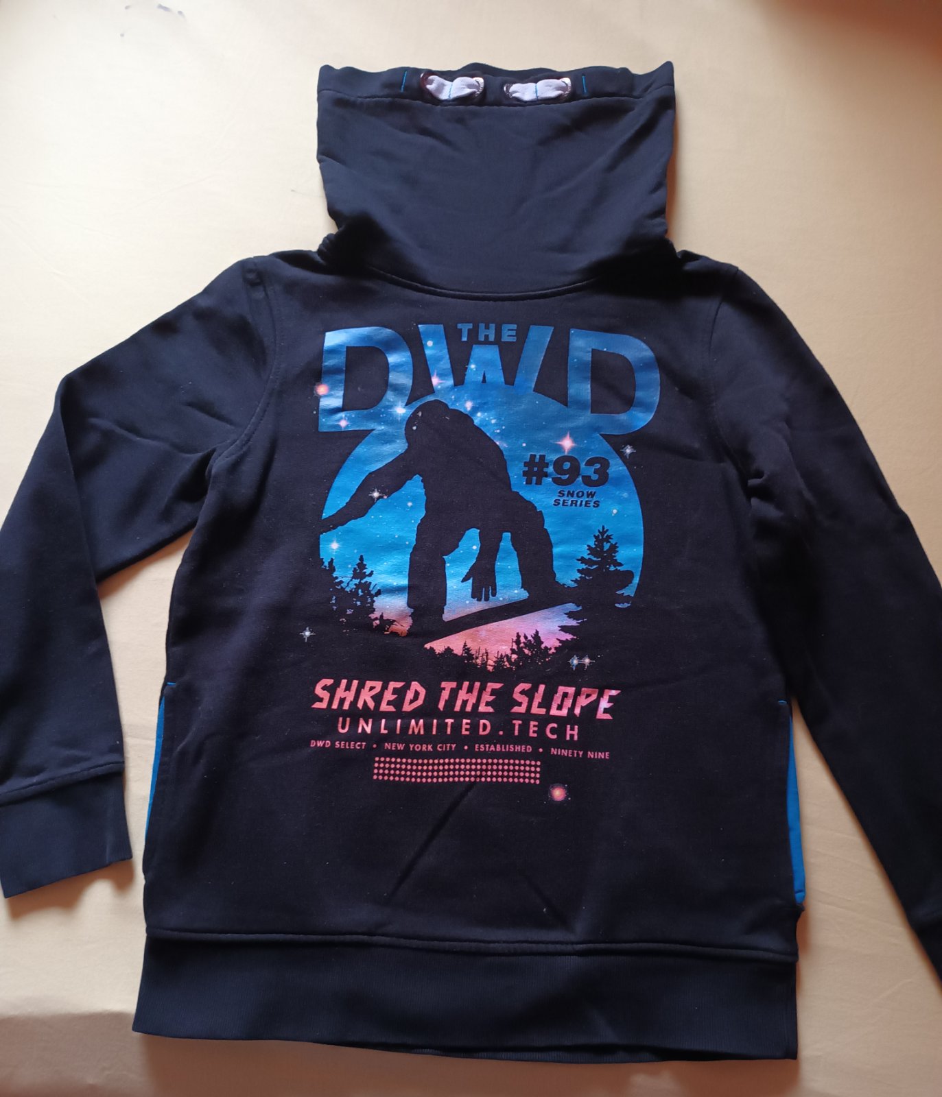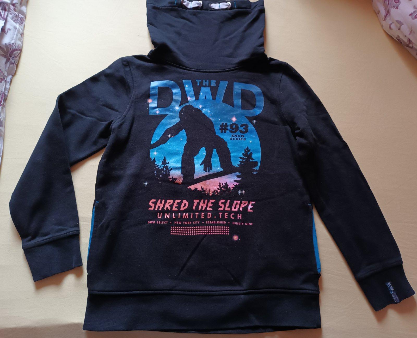 Teplá mikina, po bokoch vrecká, veľkosť 146/152. Dĺžka 52 cm.