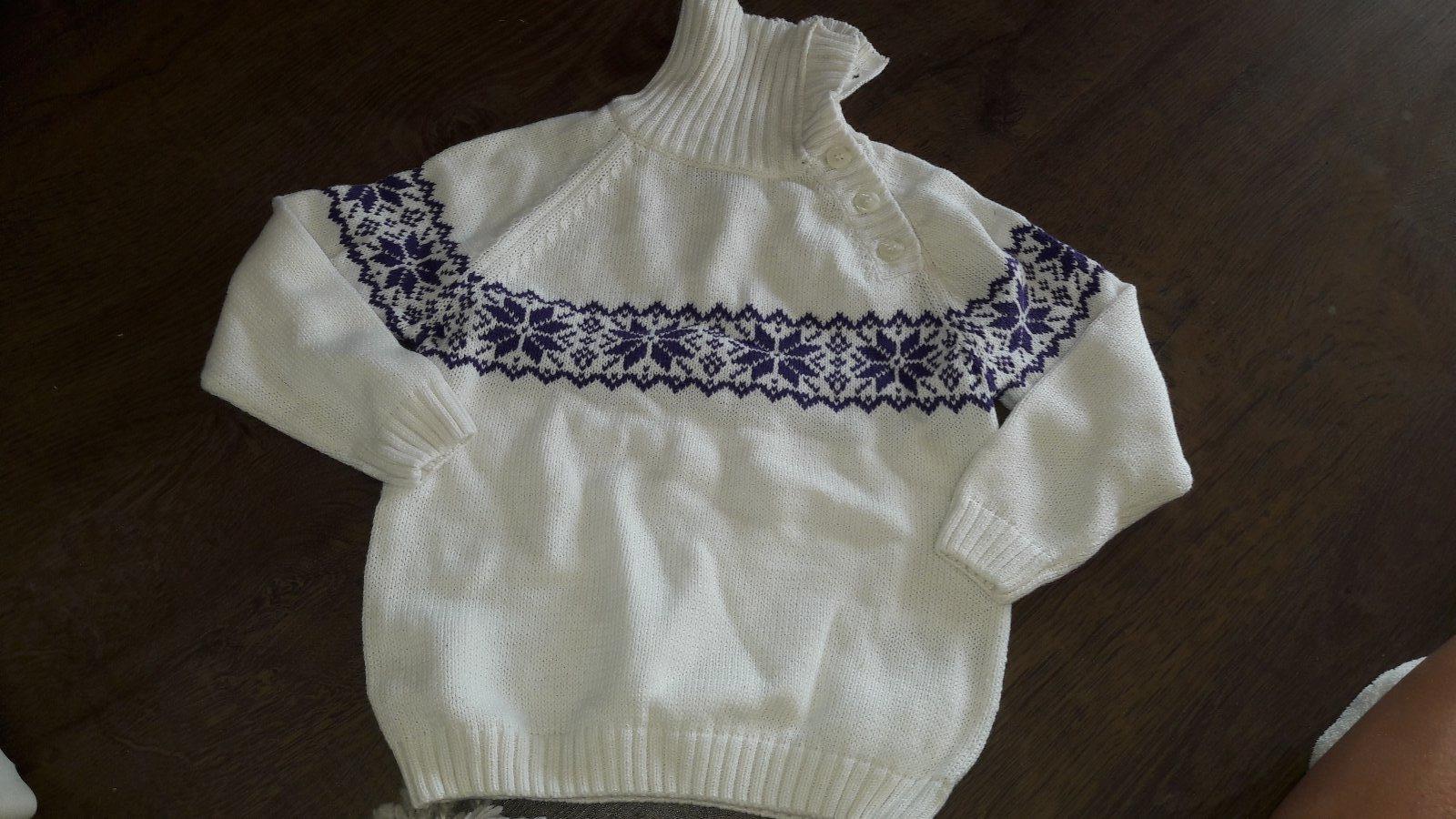 Velmi pekny sveter, biely so zlatou ozdobene na 4 roky, dlzka 36 cm