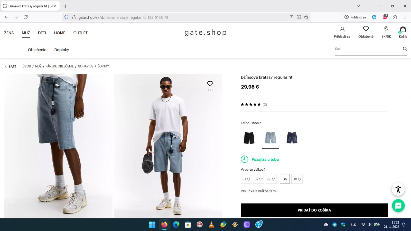 Ďalej predám pánske riflové kraťasy Gate, veľkosť L/34. Kraťasy sú nové s pútkom a bočným vreckom. Cena 15eur.