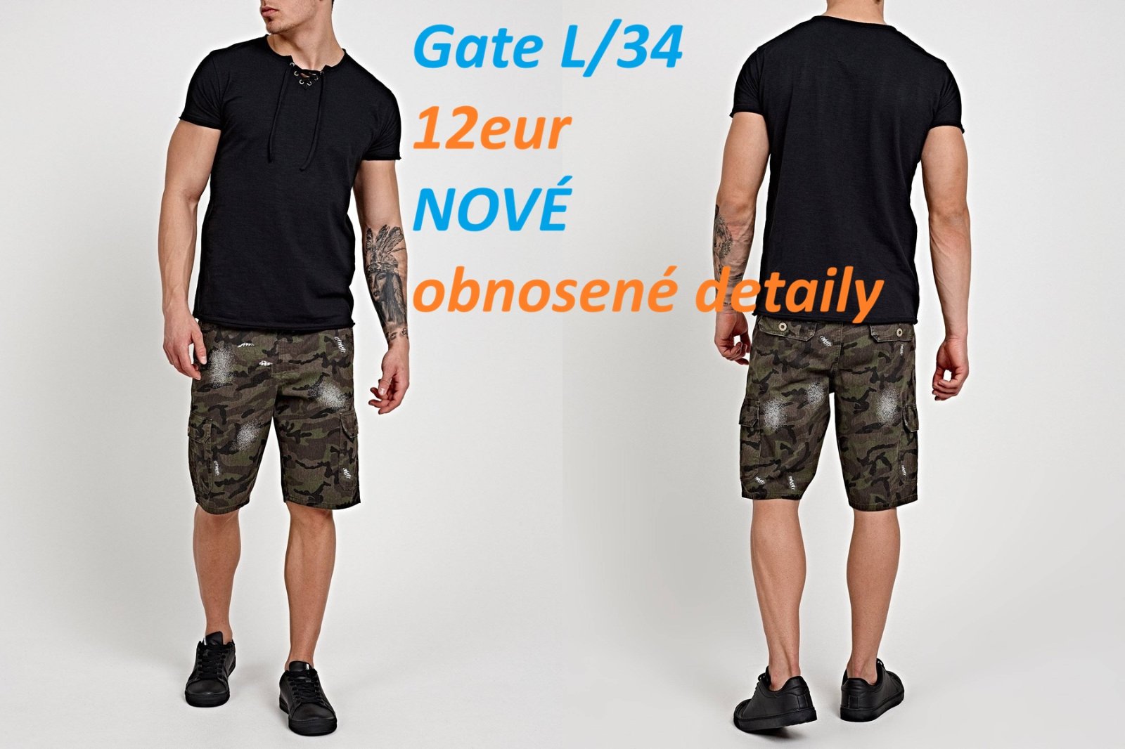 Ďalej predám pánske kraťasy Gate, veľkosť L/34. Kraťasy sú nové s obnosenými detailami. Cena 12eur.