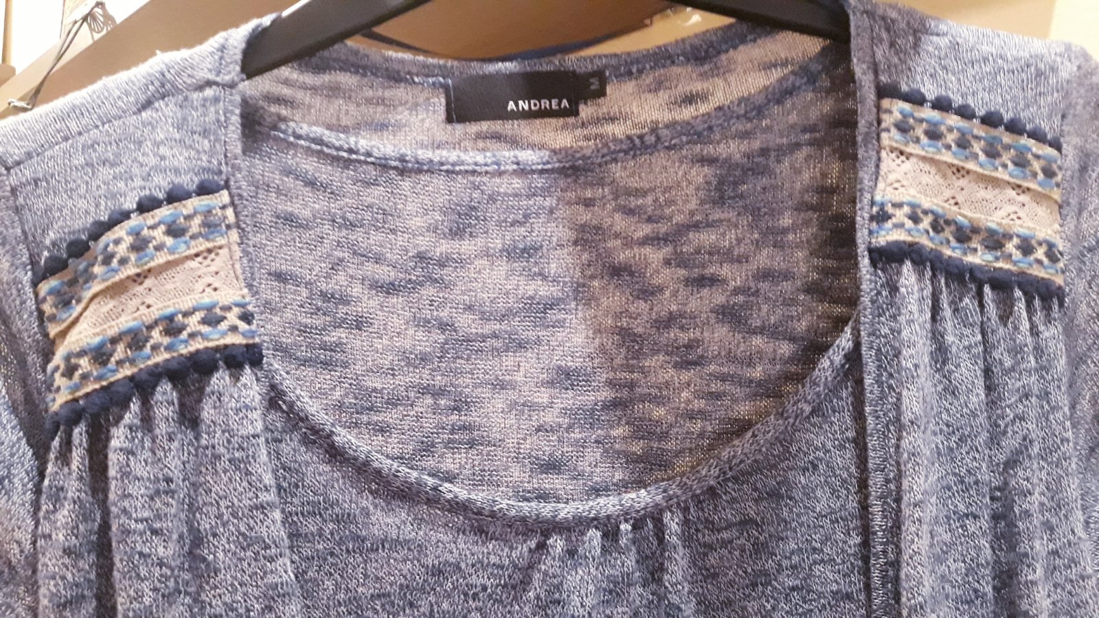 Málo nosený svetrík vo vrstvenom vzhľade. Veľkosť M - L. Materiál: 70% viskóza, 30% polyester.