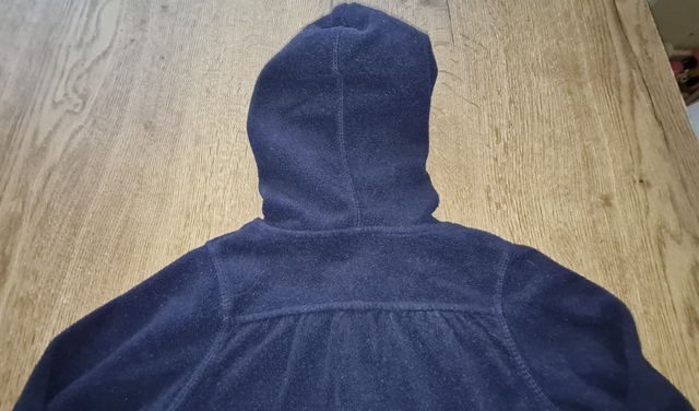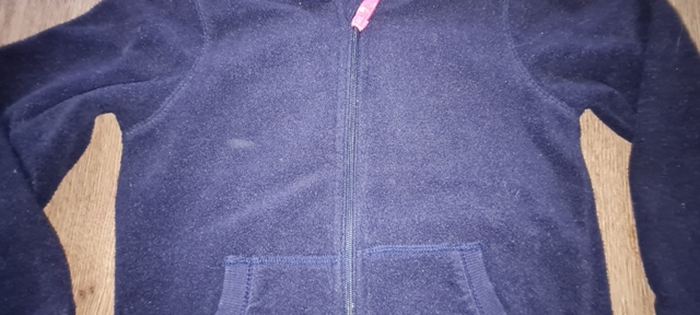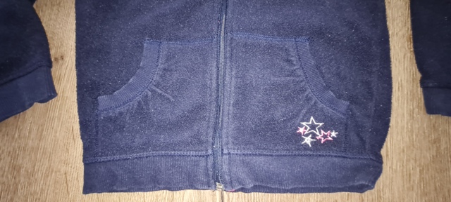 flísová mikina na zips s kapuckou, vpredu vrecká, vyšívané hviezdičky, zateplená, žmolky, polyester, nosená, dobrý stav