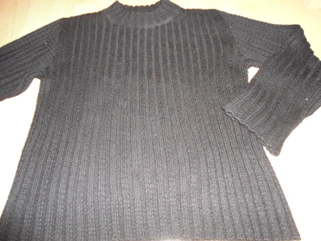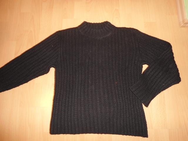 220d. cierny sveter, velk. 38, 70%vlna, 30%akryl, dlzka 53cm, rukav 53cm, cez prsia 46x2cm, noseny no este posluzi