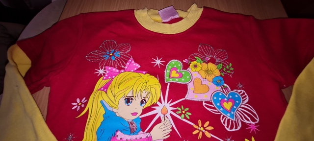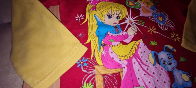 červená so žltými rukávmi, je krásna, ale na ľavom rukáve vzadu sú fliačky, čo sa nedajú vyprať, to je jediná chybička - preto je suma len symbolická, písaná v. 140 - ale je menšia, dobrý stav
