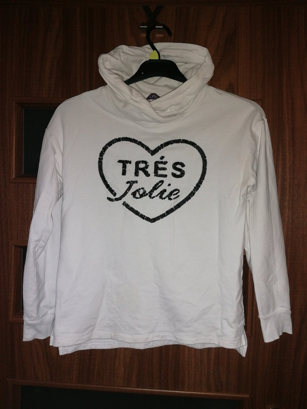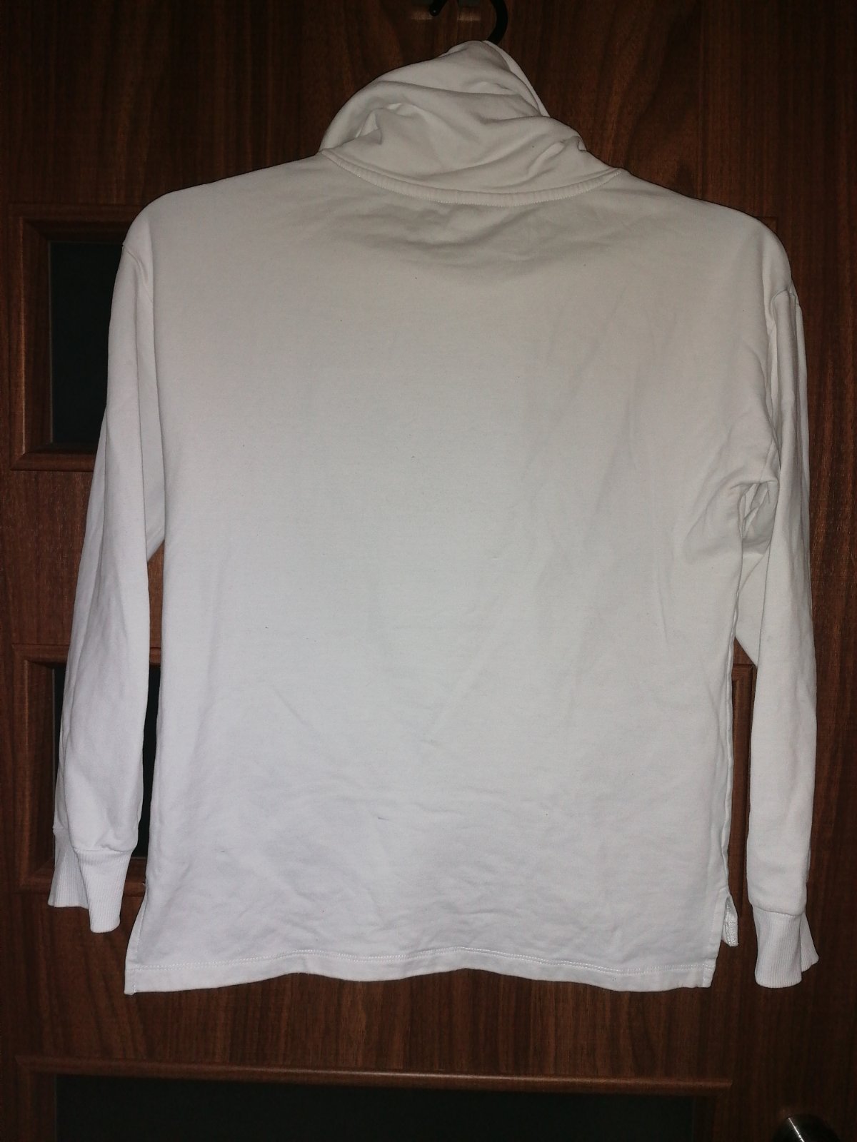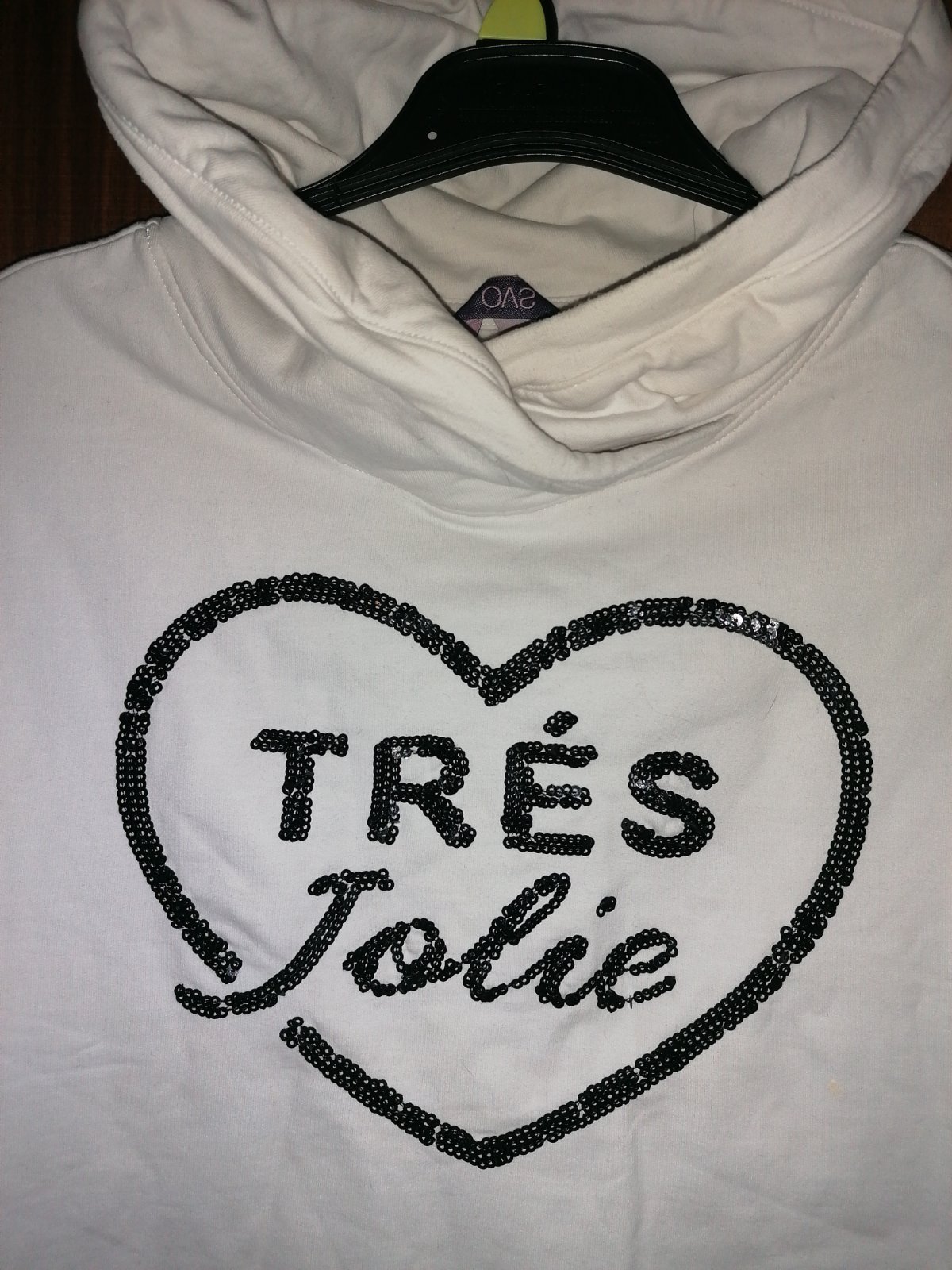Kvalitna, v top stave, ziarivo biela stredne tepla mikinka so zaujimavym golierom a decentnymi trblietkami. Bez poskodeni. Zial nestihla som ju vela ponosit.