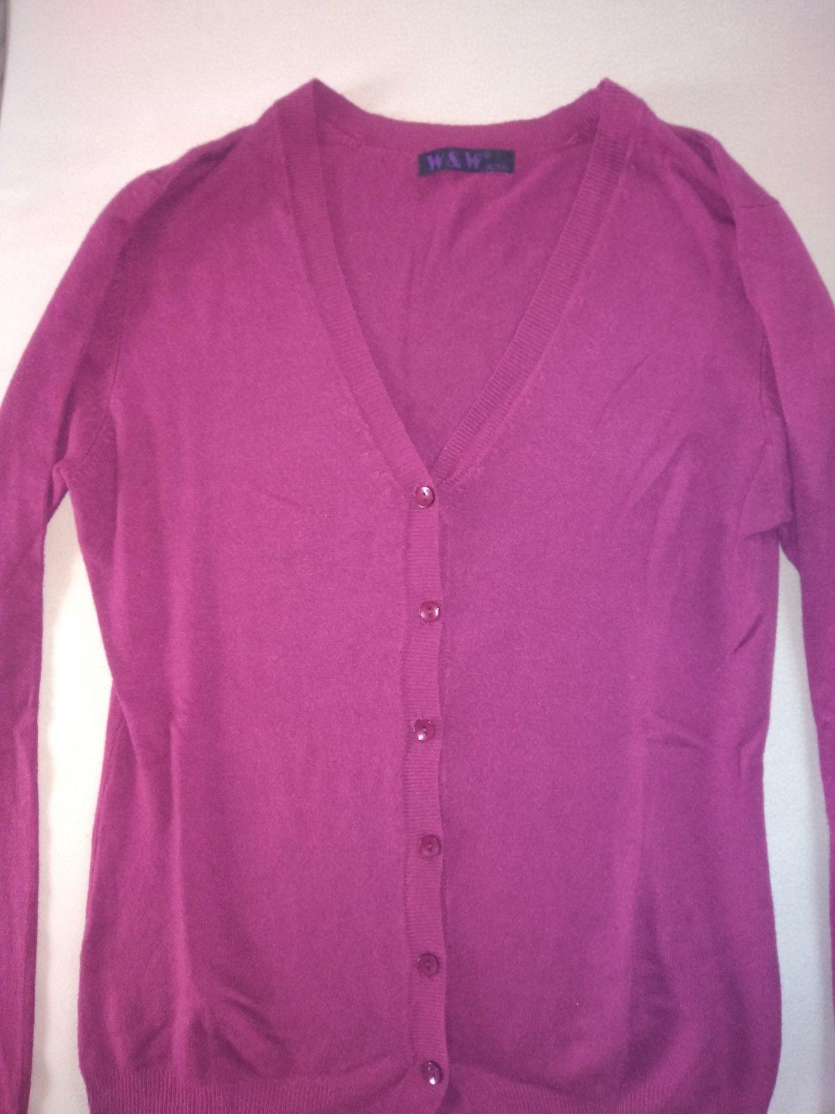 Esmara pulovrik pohodlný kvalitný, farba je krásna levandulova. 2x oblečený v top stave. Celková dĺžka 73cm, šírka v podpazuší v kľude 42cm x 2. Rukáv od krku 66cm. Je na gombíky, má ich aj na ruká...